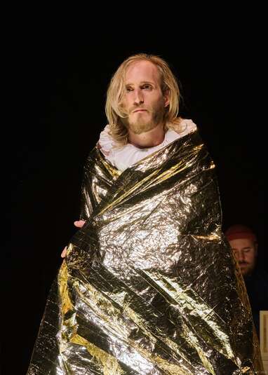 Nous avons ici une succession de tubes, à commencer par la scène du froid « See, we assemble » et le canon « Sir Walter enjoying his damsel one night » tirés de King Arthur. Les chœurs sont à la fois bien conduits musicalement et extrêmement agités sur le plan scénique. La troupe parvient à garder sa justesse et son élégance musicales. Les facéties dramatiques restent cohérentes avec l’esprit de l’époque. Charivari, « féérie et folie », sans fil conducteur particulier, est une mosaïque onirique. La mise en scène signée Denis Mignien se joue d’éléments décalés et triviaux tels que des confetti aux multiples usages, ou même de couvertures de survie, scintillantes de leur or. Dans cet esprit, Il Buranello réunit des voix qui se mettent au service de la musique d’ensemble avec intelligence et énergie.