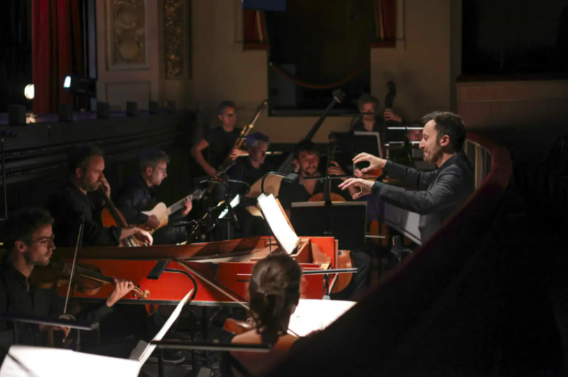 Pour sa première fois en fosse à l’Opéra de Rennes, Le Banquet Céleste, ensemble de musicien.ne.s réuni.e.s autour de Damien Guillon, s’est montré dans une forme éblouissante et d’un investissement remarquable. Dès l’ouverture, la virtuosité et la précision des cordes font mouche et elles ne se départiront pas de cette haute tenue tout au long de la soirée (Ah ! Ces pizzicati…). Les théorbes seront saisissants et incisifs comme rarement. Hautbois et basson répondront présents aux moments les plus poétiques (« Ah, crudel ») et acrobatiques de la partition (« Venti, Turbini » un soupçon tendu tout de même mais bien négocié). Les trompettes nous gratifieront d’un « Or la tromba » viril à l’humour inattendu. N’oublions pas un continuo inspiré et le clavecin virtuose de Kevin Manent-Navratil dans le concertant « Vo far guerra ». La partition de Rinaldo semble être écrite pour mettre Le Banquet Celeste en valeur et c’est une réussite.