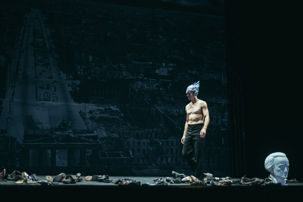 Dima Bawab, Pauline Sikirdji, Sophie Belloir sont des Filles du Rhin bien chantantes, aux voix justement équilibrées et à la lumineuse et obscure présence. Mathieu Coulon Faudemer est un comédien/danseur étonnant autant qu’inquiétant. Son numéro dansant d’Ange de l’Histoire épileptique est un grand moment autant par la technicité requise pour son exécution que par l’inconfort qu’il provoque chez le spectateur. Pascal Rophé dirige les chanteurs et les neuf musiciens solistes de l’Orchestre National des Pays de la Loire avec attention et précision, chaque instrumentiste se pliant avec talent à l’écriture exigeante de Michaël Jarrel où la beauté de la sonorité ne doit rien céder à l’expressivité.