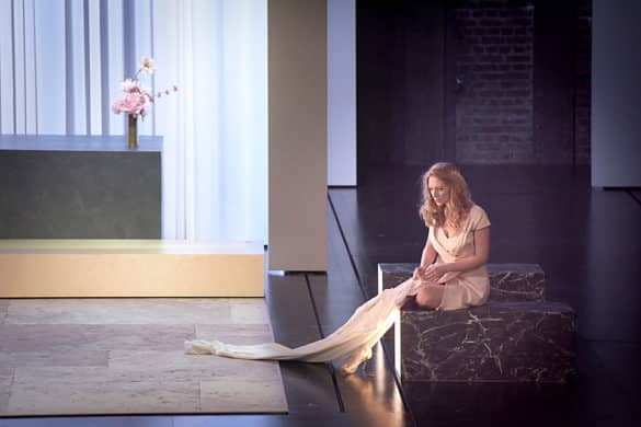 Sabine Devieilhe habite le rôle éprouvant d’Ophélie avec une sensibilité nuancée, aussi persuasive dans le récit que dans la vocalité exigeante. Son ardeur juvénile fait écho à celle de S. Degout dans leur unique duo d’amour « Astre de la lumière » (1er acte). Ailleurs, l’évolution du grain vocal (davantage de chair en se référant à sa prodigieuse Lakmé à Favart) réserve probablement d’autres rôles à venir… Elle endosse la virtuosité d’une colorature pour figurer la folie de l’héroïne, topique de l’opéra romantique depuis Lucia di Lammermoor de Donizetti. La performance des aigus cristallins et justes ne masque pas la sincérité bouleversante de son égarement final – air « Un doux serment nous lie ». L’ultime phase de l’acte du suicide tire les larmes par sa grande pudeur et l’évanescence des sons émis pianissimi. Serait-elle une réincarnation de la grande Emma Calvé, qui triomphait dans ce rôle à la Fenice (1888), grâce à « des petites notes flûtées » que le dernier castrat (Mustapha Pacha) lui avait enseignées ?