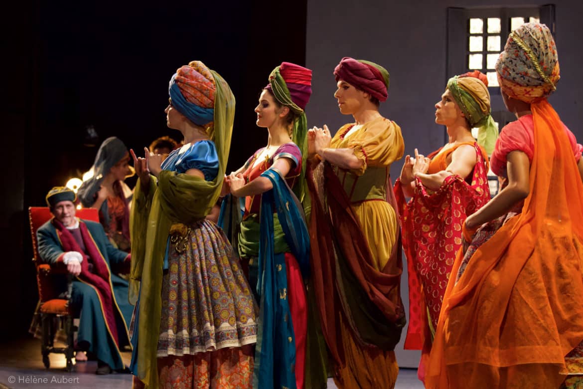 Autant dire tout de suite qu’avec Le Concert spirituel et Hervé Niquet, les intermèdes musicaux de la dernière comédie-ballet de Molière atteignent un degré de qualité superlatif : certes, on retrouve ici les qualités de précision, cette recherche des couleurs ou de contrastes expressifs qui séduisent tant dans cette formation ; mais ce qui frappe avant tout, c’est l’aspect jubilatoire de la musique, constituant un parfait écrin pour les scènes parlées auxquelles elle tend un miroir ironique et tendrement moqueur. Aux musiciens du Concert spirituel se sont joints six chanteurs (Axelle Fanyo, Lucie Edel, Flore Royer, Blaise Rantoanina, Romain Dayez et Yannis François), dont la moitié, en cette soirée du 28 janvier… est malade ! Les artistes ont cependant tenu courageusement à assurer la représentation : en dépit d’une puissance vocale parfois diminuée par rapport à ce qu’ils font habituellement entendre, leur indisposition n’a pas trop durement affecté leurs capacités vocales, et l’on apprécie chez chacun d’entre eux la fraîcheur des timbres, le soin accordé à la diction, et surtout un esprit d’équipe et une jubilation communicative.