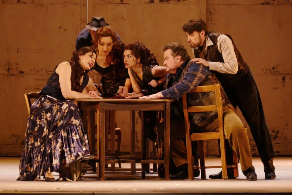 Ces réserves exprimées, il faut convenir que la mise en scène de Jean-Louis Grinda est riche de qualités narratives et qu’elle est proche de l’idéal pour accompagner de jeunes dilettantes qui découvriraient Carmen avec elle. Dès les premiers accords endiablés de l’ouverture, on assiste en effet sur le plateau au dénouement du drame : un jour de courses à Séville, un soldat déserteur assassine sauvagement une bohémienne et se laisse arrêter docilement par des soldats avant d’être conduit au fond d’une geôle. Fait divers ou crime passionnel ? On comprend aisément que tout le spectacle sera le minutieux flash-back de ce féminicide destiné à donner aux spectateurs tous les éléments à charge et à décharge pour essayer de comprendre le geste de Don José.