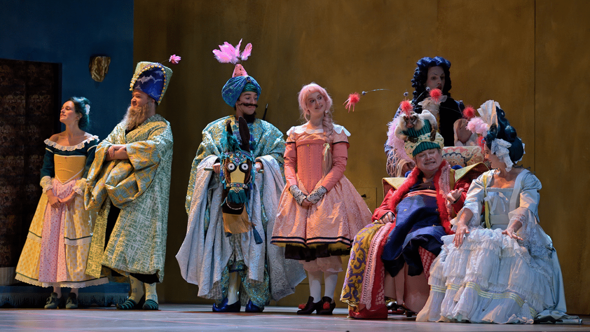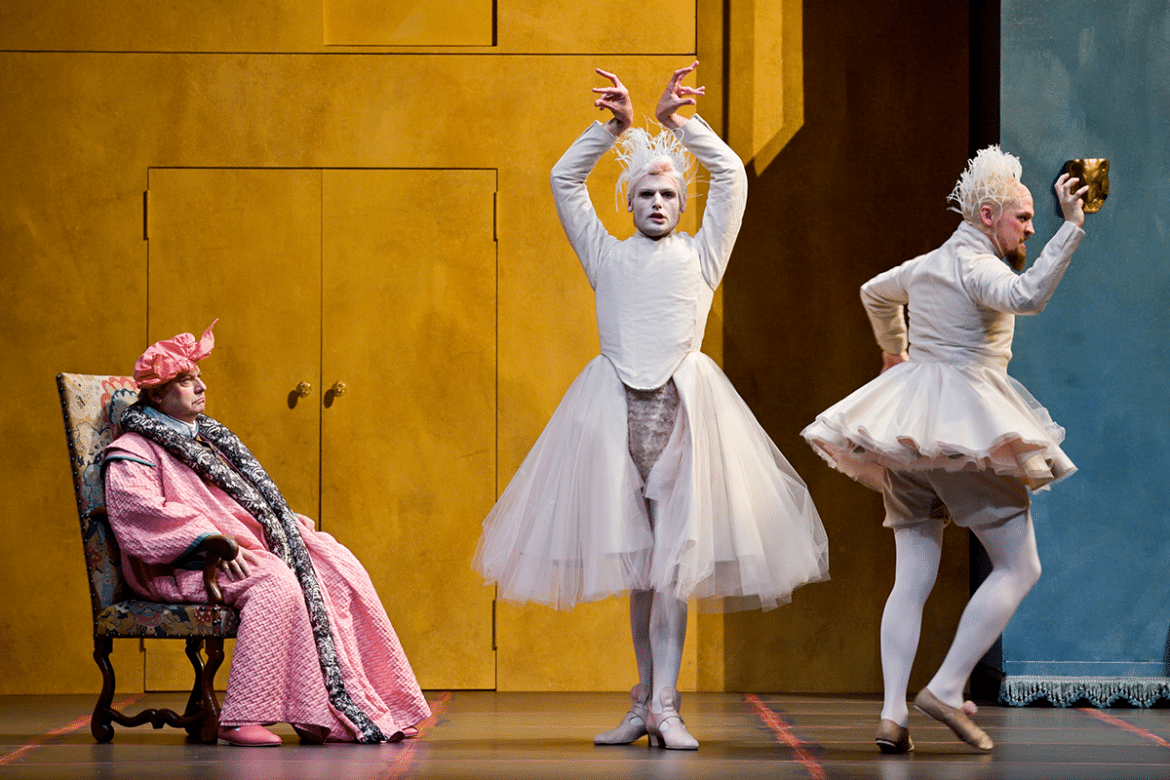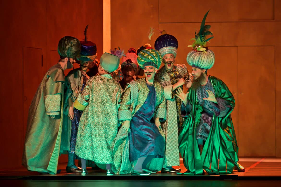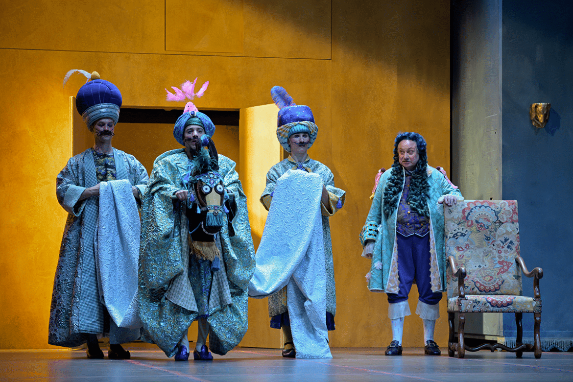 Le spectacle est un modèle d’équilibre. Équilibre de l’œuvre tout d’abord, présentée sous une forme que tous les spectateurs ne connaissent peut-être pas : en effet ce n’est pas à la pièce de Molière telle qu’elle est traditionnellement proposée que nous assistons, mais à la comédie-ballet originelle, telle qu’elle fut conçue et créée devant le Roi et la Cour, le 14 octobre 1670. Ultime fruit de la connivence artistique entre Molière et Lully, le chef-d’œuvre frappe par l’intégration parfaite et naturelle des parties chantées et dansées dans la comédie dont nous sommes si familiers. Ce genre, dont Molière était si fier, et qui avait pour vocation de concurrencer durablement l’opéra italien de l’époque, préfigure rien moins que l’opéra français, et, dans une certaine mesure… la comédie musicale ! Musicalement, nous écoutons un condensé du meilleur Lully, et assistons à de charmantes petites scènes, tel le dialogue entre le berger et la bergère de l’acte I, joué dans un théâtre de poche intégré à même la salle à manger de Monsieur Jourdain. Et bien sûr, Lully donne la pleine mesure de son talent dans la magnifique cérémonie de réception du Bourgeois en Mamamouchi, ainsi que dans le très beau tableau final.