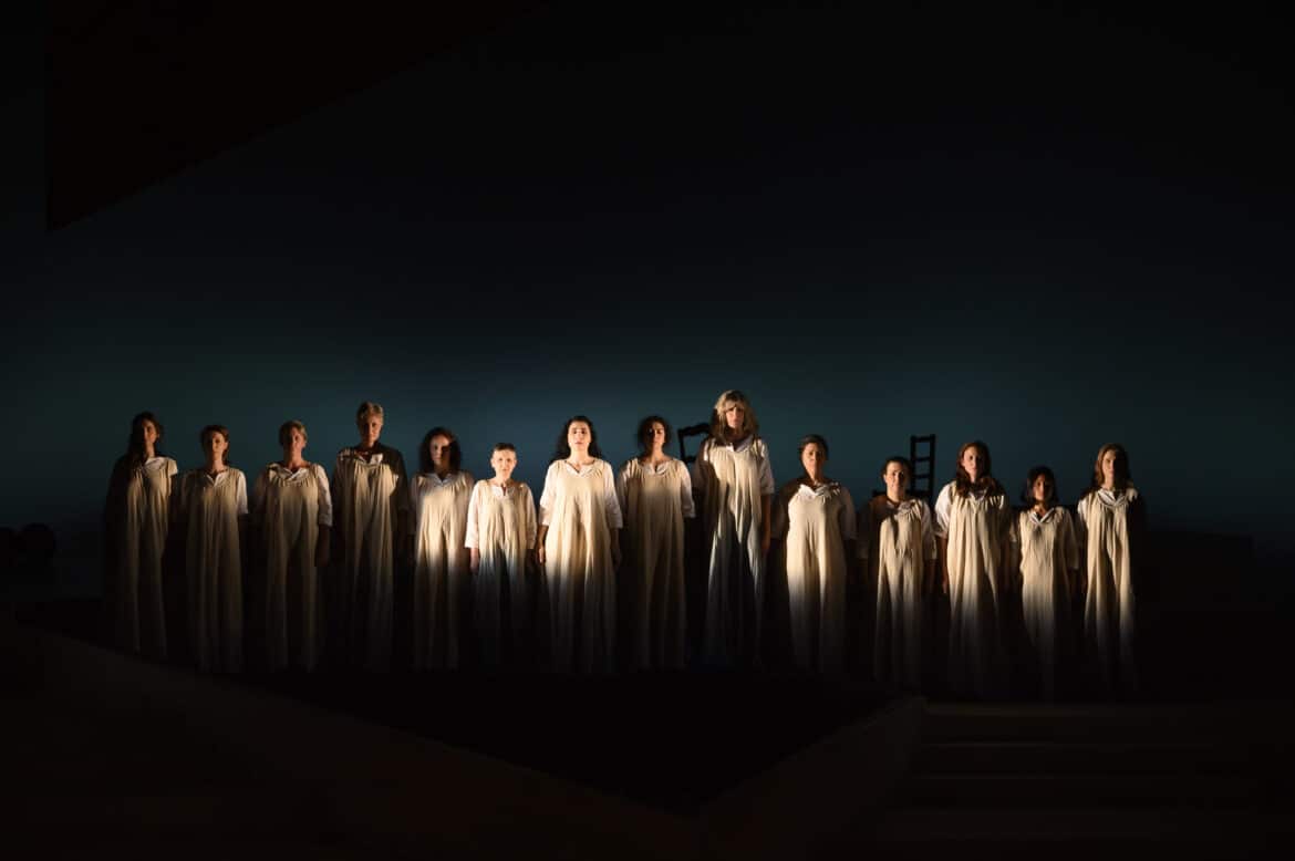 La note d’intention publiée dans le programme de salle précise le travail de la metteuse en scène : pour elle, la première moitié des Dialogues des carmélites jusqu’à la mort de Mme de Croissy tourne essentiellement autour du drame intime de Blanche avant que l’élection d’une nouvelle Prieure et l’irruption de la révolution entre les murs du carmel ne donnent soudain à la seconde partie du spectacle une dimension plus épique. L’intimité des confidences partagées de scène en scène forme le fil conducteur de l’œuvre et la justification de ce titre magnifique dépouillé de tout article : Dialogues des carmélites (et non pas Les Dialogues des carmélites comme on l’entend pourtant si souvent).