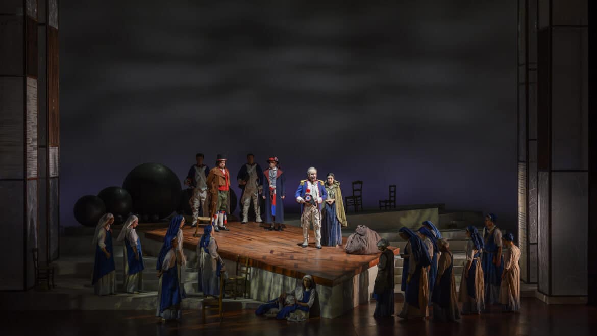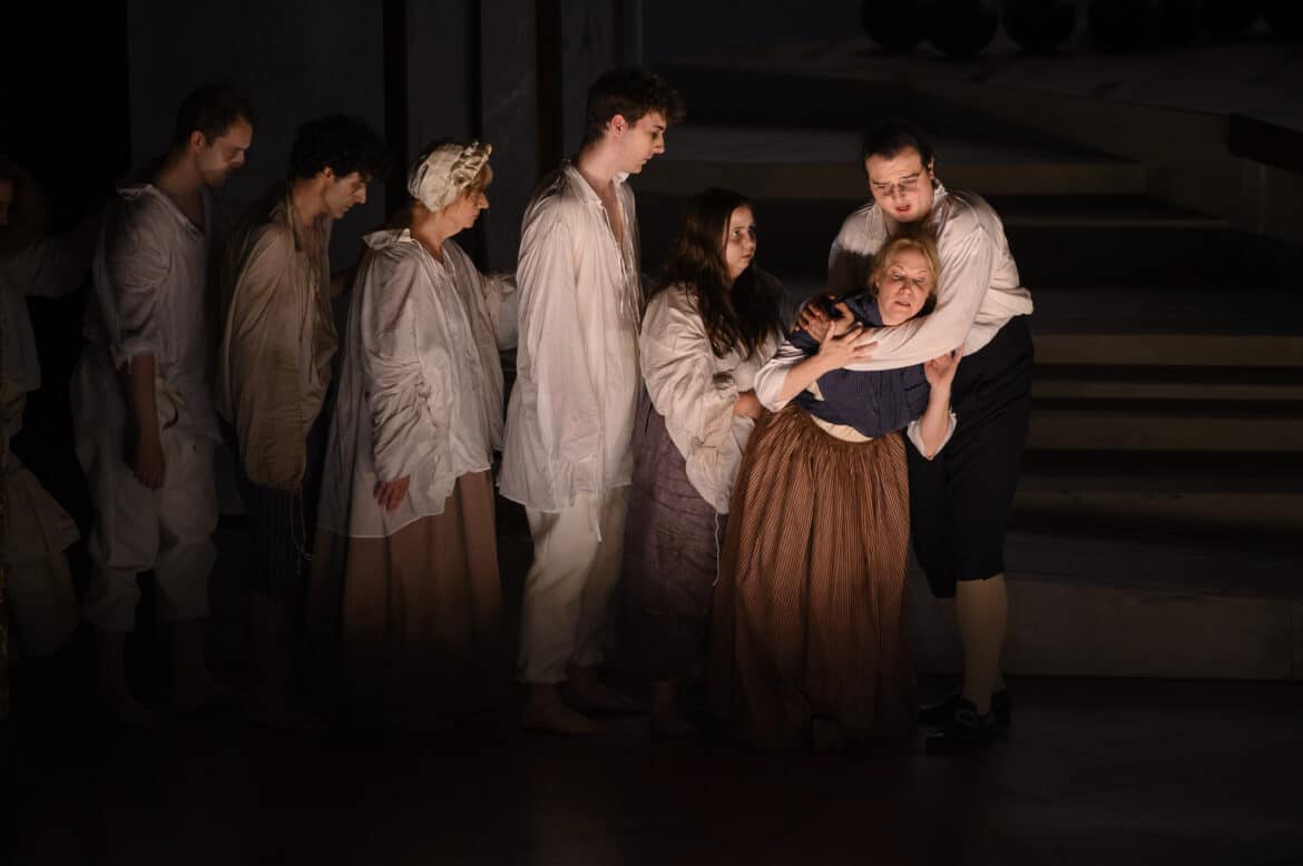 La légitimité de Marie Lambert-Le Bihan à mettre en scène les Dialogues est incontestable : de Francis Poulenc, elle a déjà proposé au public du festival de Buxton sa conception de la Voix humaine, et Andrea Chénier monté à Barcelone en 2018 autour du ténor star Jonas Kaufmann lui a déjà offert l’opportunité de travailler sur une œuvre ancrée dans le contexte révolutionnaire. Les Carmélites liégeoises s’inscrivent donc comme une prolongation logique de ces spectacles et optent à leur tour pour une esthétique réaliste assez attendue mais finalement très élégante.