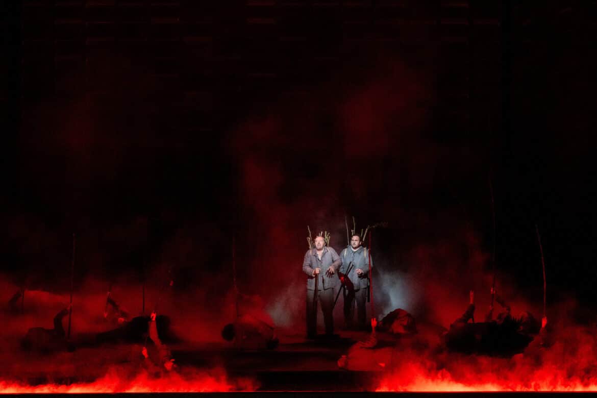 Malin Byström incarne Marie. La partition de Berg est particulièrement délicate pour ce personnage. Elle fait appel à toute l’étendue vocale de la soprano suédoise, de l’extrême grave à l’extrême aigu, nécessitant une technique à toute épreuve pour garder la même force et linéarité dans tous les registres, de la douceur lorsqu’elle s’adresse à son enfant ou lorsqu’elle prie et s’identifie à Marie-Madeleine, à la peur quand Wozzeck la piège et la poignarde, en passant par la joie quand elle danse dans les bras du beau Tambour-Major campé par le ténor Thomas Blondelle, héroïque et fougueux, à la voix sûre et sensuelle. Une belle découverte, tout comme cet autre jeune ténor Robert Lewis, qui interprète Andres, l’ami de Wozzeck, et dont il conviendra de suivre la carrière prometteuse.