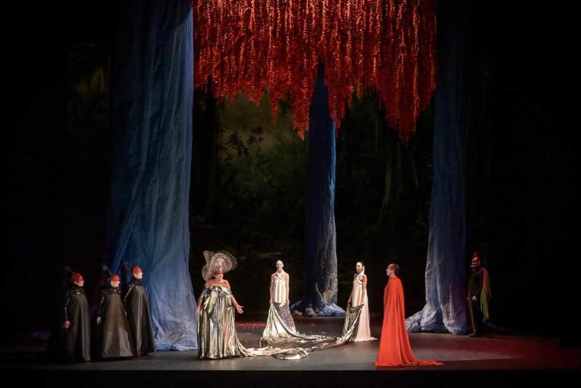 Cédric Klapisch s’intéresse à la crise climatique et au rapport de l’Homme à la Nature dans une vision toute rousseauiste du sujet. La Reine de la Nuit et son côté sauvage, et donc nature, sera opposée à un Sarastro urbain et scientiste. Elle sera aussi plus amicale que souvent, le Bien et le Mal ne se trouvant pas forcément où on le pense. Des aspects du livret de La Flûte parfois sexistes, racistes et misogynes, décision est prise d’en rire pour mieux les dénoncer. Le récit d’initiation maçonnique se transforme, lui, en un conte enfantin, parcours fantasque pour parvenir à l’âge adulte. Du fond, nous ne discuterons pas, nous ne sommes pas de ceux qui cherchent à faire taire les envies et les visions personnelles des metteurs en scène. Sur la forme, on se permettra de s’interroger.
