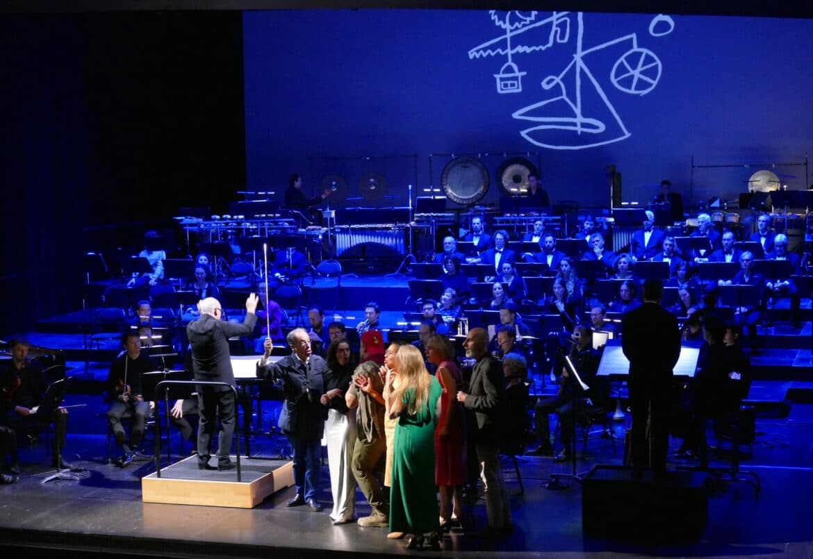 Au-desssus de tout cela, il faut reconnaître que, si la partition inédite est gigantesque et d’une grande complexité, l’art du maestro Roland Hayrabedian (soutenu par un deuxième chef sur scène, Florent Mayet) est à la hauteur, lui qui sobrement cristallise la diversité des musiciens-comédiens tout autour de lui, tel un démiurge rassemblant les fils sonores et leur insufflant le principe créateur. Bien plus que l’œuvre, c’est donc la maîtrise musicale qui éblouit le public de l’Opéra de Marseille, et la puissance du challenge. Tout en étant interloqué par tant d’audace, il réagit avec vigueur, applaudit chaleureusement et se retire impressionné.