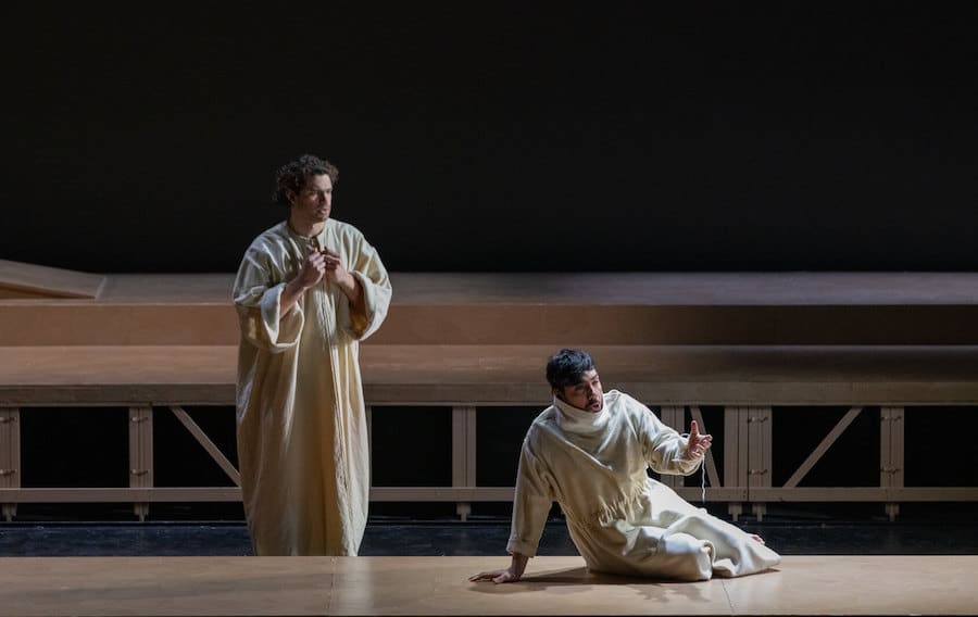 Le maestro concertatore Manlio Benzi fait de son mieux pour donner un sens à une œuvre qui est surtout sauvée par sa brièveté, un peu plus d’une heure, afin d’éviter le spectre de l’ennui. Les chanteurs qui se sont produits dans ce qui risque d’être un unicum dans la programmation de l’opéra ont également été dignes d’éloges. Dans la partie-titre, Francesca Dotto délimite efficacement les trois phases de l’évolution du personnage de Maria : dans la première partie, une prostituée frivole, dans la deuxième, une âme tourmentée en route vers une rédemption qui s’avère plutôt soudaine – il n’y a pas de « méditation » ici… – et enfin, dans la troisième, une anachorète attendant la mort. Le timbre et l’approche vocale sont adaptés aux différents besoins expressifs afin de rendre un peu plus crédible un personnage qui ressemble de près ou de loin à celui de Thaïs.