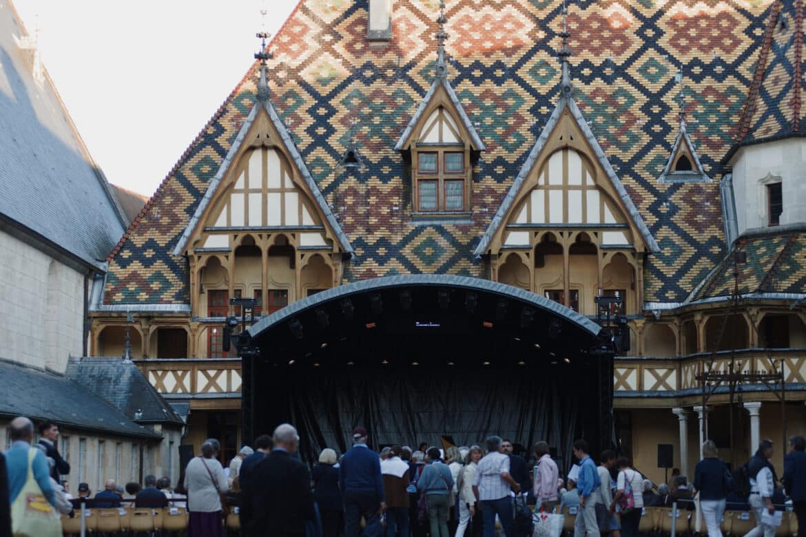 Il faut prendre plaid, pull, chandail pour passer une belle soirée dans la cour pavée de l’Hôtel Dieu. On vient aussi pour y admirer les tuiles vernissées sous les étoiles d’été… Les nombreux bénévoles vous accueillent avec gentillesse. L’acoustique est satisfaisante même si les toiles (en plastique) de fond de scène du plateau n’amplifient pas le son. Il vaut mieux ne pas être trop loin si les chanteurs, notamment les contreténors, n’ont pas une puissance suffisante…