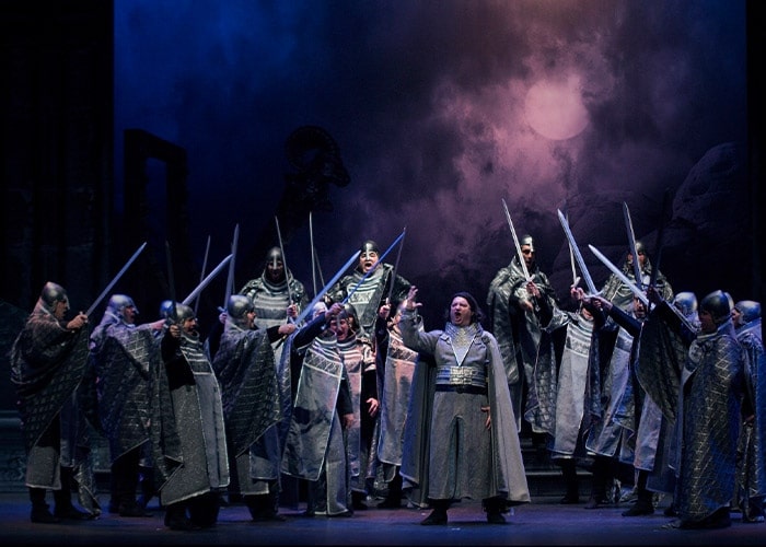 Le Coro Lirico Siciliano s’en sort avec les honneurs, martelant dans la scène de l’enclume, martial dans le tableau du campement, où on lui fait néanmoins jouer une pantomime bien ridicule.