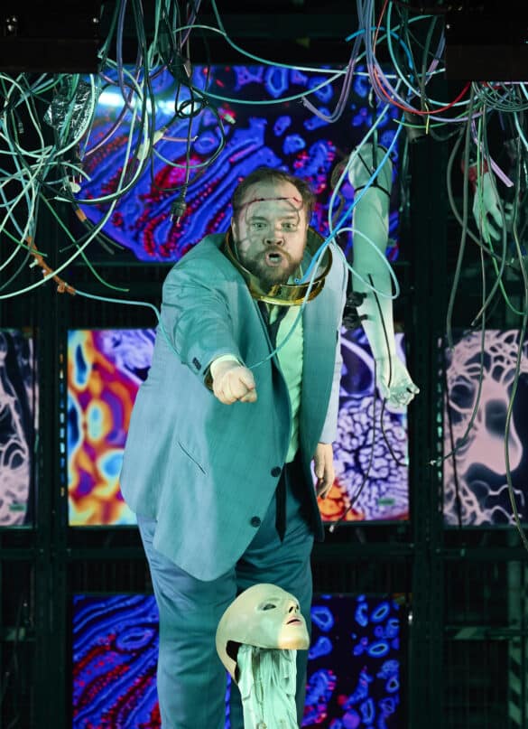 Bref, au bout de quelques minutes, l’ennui s’installe, dont l’interprétation musicale ne parviendra pas vraiment à nous extirper… La distribution réunie manque en effet de brillant et peine à accrocher l’oreille. Aucun interprète ne démérite vraiment, mais aucun ne fait non plus véritablement vibrer l’auditoire : si Eve-Maud Hubeaux est une honnête Fricka, jeune de silhouette et de voix, Iain Paterson manque quelque peu de l’autorité et du charisme qui permettraient de donner à Wotan les traits saillants le distinguant des autres dieux … Marie-Nicole Lemieux, vibrato assez prononcé et registre aigu acide, ne nous a pas semblé ce soir dans sa meilleure voix. Brian Mulligan nous convainc dans un premier temps par le côté « humain » de son interprétation, mais les limites qu’il rencontre dans le registre aigu pénalisent sa prestation, notamment dans la scène de la malédiction. Les autres interprètes, honnêtes sans plus (à l’exception peut-être du sonore Fafner de Mika Kares et du Mime très présent, vocalement et scéniquement, de Gerhard Siegel), « font le job » le plus souvent, mais sans vraiment parvenir à sortir d’une honnête routine.