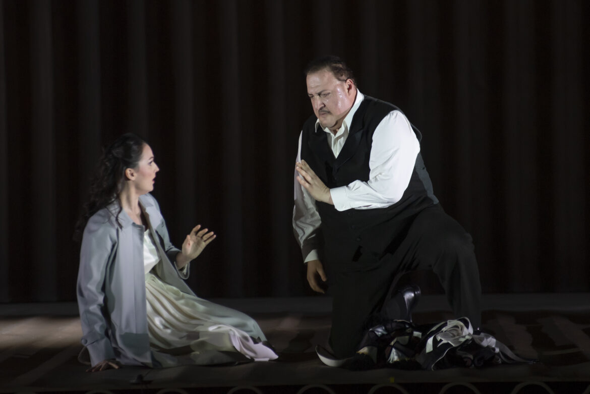 Dans son air de l’illusion, la soprano slovaque, en prise de rôle, brille par un legato sensationnel, des trilles enivrantes et une agilité ne manquant pas d’une certaine épaisseur à la Scotto, voire à la Callas. Aérienne dans le précédent duo avec son père, en particulier grâce à des vocalises stratosphériques, elle oppose sa fragilité angélique à la gravité du bouffon qui jaillit surtout des couplets du souvenir. Les deux se retrouvant dans l’unisson des larmes de la scène des aveux, l’une émouvante dans son récit de la séduction, l’autre menaçant dans son projet de châtiment. Sublimée dans la mort, la victime suscite un dernier cri de désespoir saisissant chez ce héros à son tour trahi : « Ah! la maledizione! ».