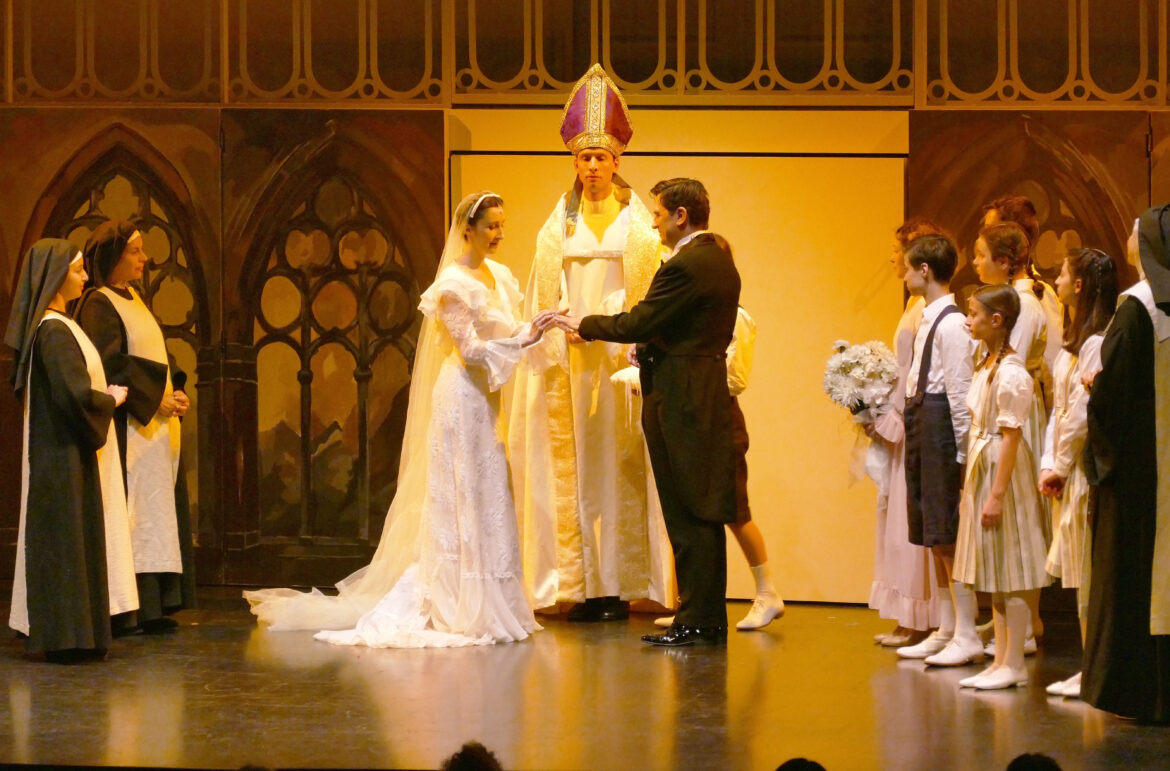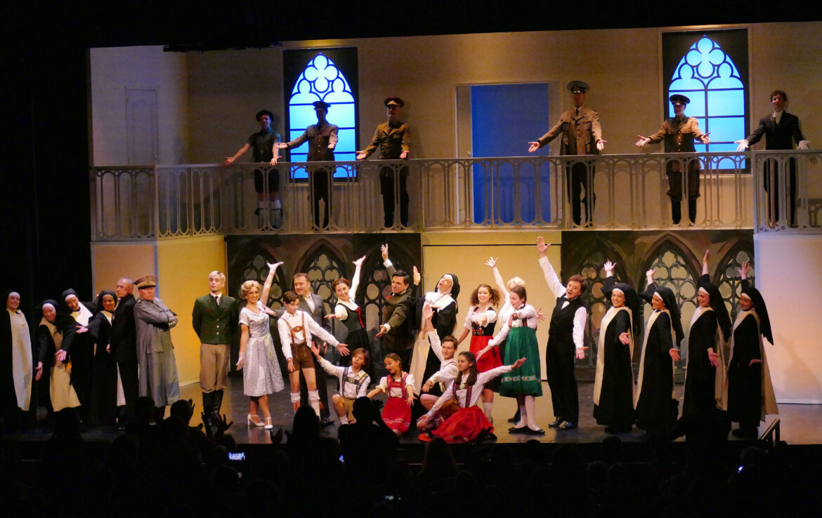 De la première, on connait largement la passion portée au Musical theatre, un répertoire dont elle maîtrise parfaitement les codes. Avec l’intelligence qui caractérise chacune de ses productions, Carole Clin sait prendre la mesure des limites logistiques d’un espace qu’elle parvient à parfaitement mettre en mouvement, donnant ainsi le tempo scénique d’une représentation sans aucun temps mort. Au fil des quelques trois heures de ce spectacle, l’œil se plait à suivre un mouvement perpétuel d’actions scéniques qui, au-delà d’un livret original particulièrement bien ficelé par Howard Lindsay et Russel Crouse, met en évidence la capacité chez la metteuse en scène à dérouler les nombreux climax d’une action dramatique qui va crescendo : dans des décors signés des Ateliers Sud Side qui permettent au spectateur ébahi de retrouver sur scène la construction gothique de l’abbaye de Nonnberg ou l’imposant escalier central de la demeure Von Trapp, sur fond suggestif d’un mapping nous faisant à l’occasion surplombler la vallée salzbourgeoise, on passe aisément du rire aux larmes – mais oui ! – et on retient souvent son souffle devant les actes de courage et de dépassement de soi, d’une simplicité bouleversante, des principaux protagonistes. Là encore, la mise en scène sait braquer, au moment opportun, le projecteur au détour d’une phrase, s’appuyant sur le regard des interprètes voire sur la simple sonorité d’un moteur inquiétant de voiture ou l’apparition brutale d’emblèmes de triste mémoire. Autant d’instants qui resteront à l’esprit, une fois le rideau retombé.