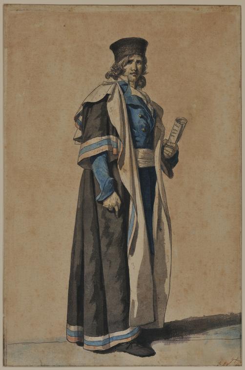 Il est à noter que David fut également metteur en scène d’événements politiques : il organisa plusieurs cérémonies révolutionnaires, telles que la Fête de la Régénération ou la Fête de l’Être suprême, et imagina même des costumes civiques, inspirés de l’Antiquité, du Moyen Âge et de la Renaissance (costume du Citoyen français, du Législateur, de l’Officier municipal) qui, à y regarder de près, s’apparentent à de véritables costumes de scène !