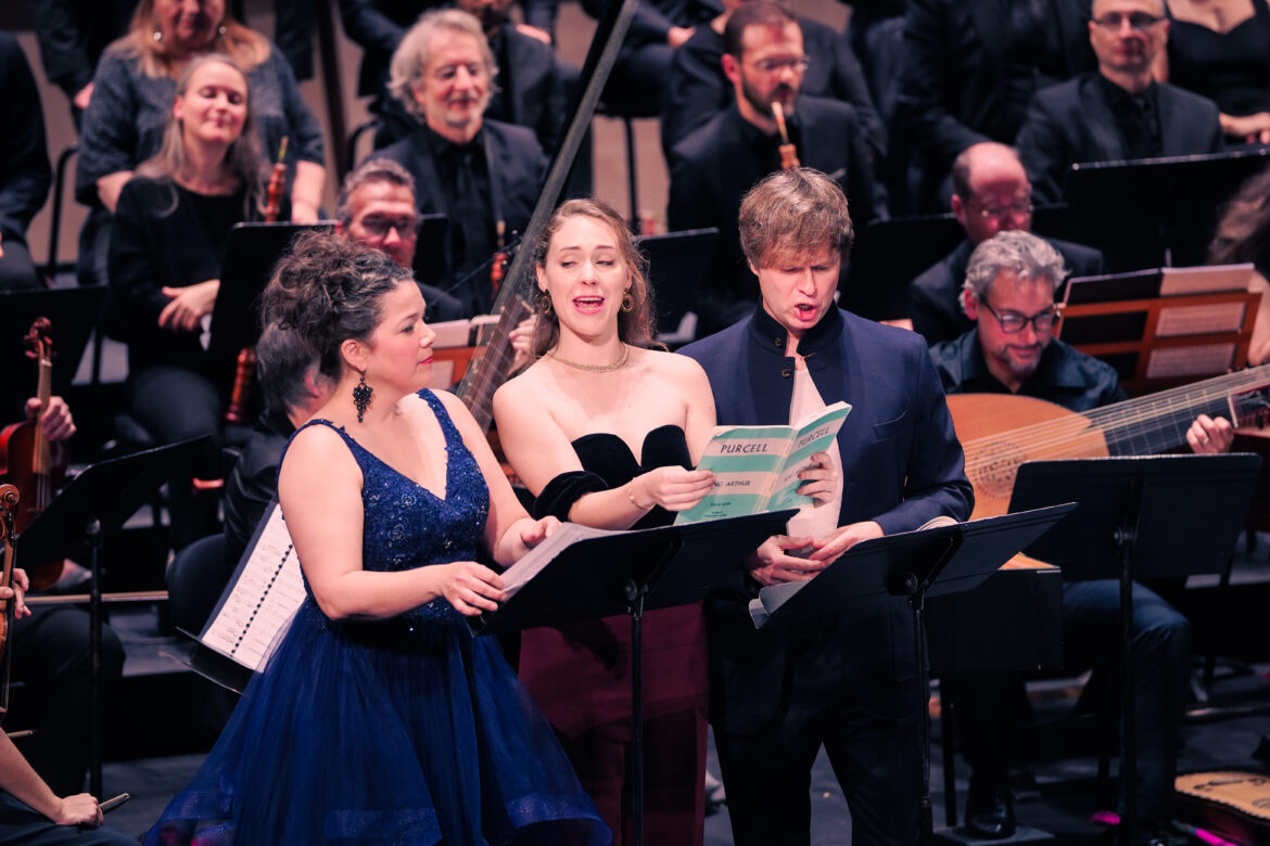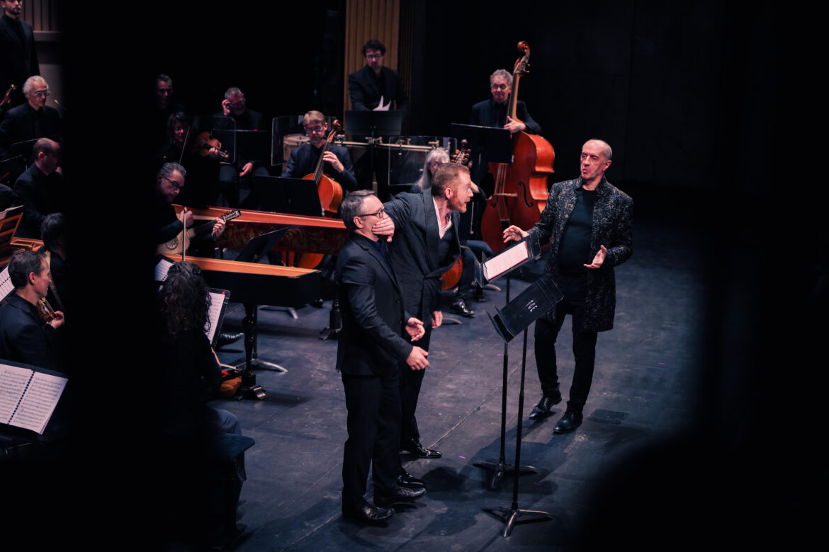 Auvity, en grand forme, s’impose avec sa facilité naturelle à incarner un personnage, et une voix charnue sans perte ni d’agilité, ni de densité dans les aigus. Hélène Guilmette avec le lyrisme qu’on lui connaît entonne en particulier un très beau “Fairest Isle” avec juste ce qu’il faut de nostalgie. Floriane Hasler n’est pas en reste avec une voix d’une belle rondeur, tandis que son camarade Robin Tritschler s’amuse sur scène avec Auvity : ils se volent mutuellement les répliques, sous les encouragements de Niquet. Andreas Wolf impose un timbre de basse solennel et forme un beau trio vocal avec ses compères.