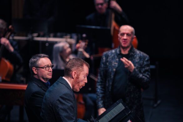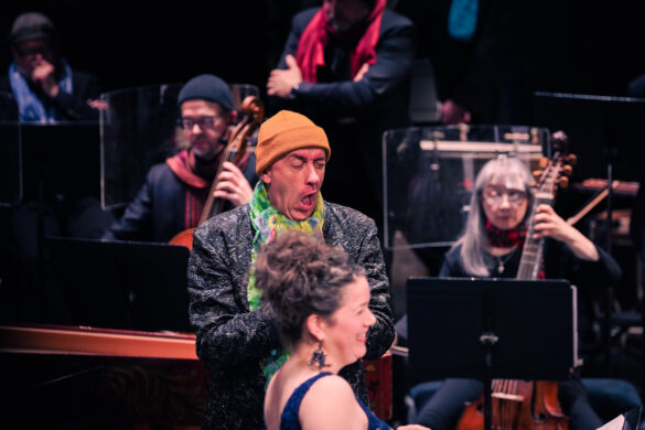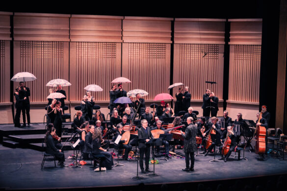 Ceux-ci font montre d’autant de facétie que leur chef d’orchestre. Intrigue complexe ? On ne sait plus qui est qui ? Aucune importance ! Pour notre Roi Arthur, Niquet fait illustrer les airs par le chœur du Concert Spirituel : sous des parapluies, des pulls, en couple, ou en formation normale, on retrouve ici comme un ancêtre des comédies musicales. Les voix sont chaleureuses et l’ensemble présente un bel équilibre. Mieux encore, elles s’allient parfaitement à celles des solistes, et grâce à ce joyeux ensemble, le public a droit à des instants marquants : le fameux air à boire “Your hay it is mow’d… ol’ england” emporté par l’énergie du haute-contre Cyril Auvity est un moment des plus réjouissants !