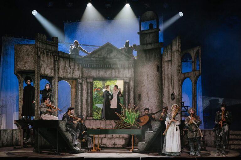 Tous les artistes sur scène, dans un véritable esprit de troupe, participent d’un même geste, étant tour à tour chanteur-acteur, chanteur en ensemble, comédien et danseur. La mer est le personnage principal au sein duquel se débattent grotesquement et magnifiquement les sentiments humains. Elle est à la fois la musique, le mouvement et le décor.