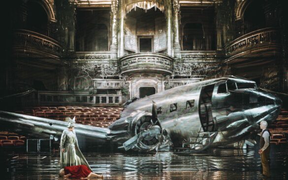 On comprend bien que la carlingue de ce bimoteur – qui se retrouve au milieu du plateau lors des scènes capitales de l’ouvrage : à l’acte I où l’épée Notung est plantée dans l’une de ses ailes, à la fin de l’acte suivant où Wotan y réintroduit l’un de ses tronçons brisés et, à l’acte III, au terme d’une chevauchée des walkyries, particulièrement réussie, où l’on suit sa trajectoire enflammée – constitue un dénominateur commun dans la communication, le plus souvent impossible ou condamnée d’avance, entre les mondes présentés par Wagner dans le Ring. Au-delà de la symbolique – qui n’engage que nous ! – on n’en demeure pas moins circonspect, au terme de cette première journée, sur le sens personnel que veut donner Livermore à la fable wagnérienne.