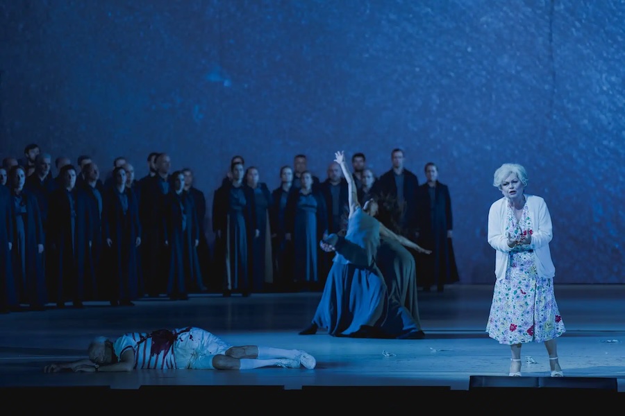 Puissance évocatrice, intensité émotionnelle et pureté formelle se fondent dans un spectacle qui atteint son apogée dans la deuxième partie et qui, à la fin, déclenche les applaudissements d’une salle comble : près de quinze minutes d’ovation debout récompensent le travail des chanteurs, du chœur, du chef d’orchestre, de l’ensemble de l’orchestre et des créateurs de l’appareil visuel. Visiblement ému, Guadagnino invite également sur scène Alice Goodman, autrice du livret, aujourd’hui pasteure anglicane. Grâce aux chorégraphies d’Ella Rotschild, les danseurs sont eux aussi très applaudis, éléments porteurs supplémentaires d’un spectacle destiné à rester dans les mémoires.