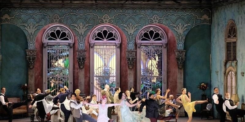 L’intrigue a incité le metteur en scène et directeur du festival à choisir comme cadre la Cuba des années 20, la saga d’une famille mafieuse pouvant s’étendre bien au-delà des personnages du livret. Carlo, le protagoniste éponyme de cet opéra, ne chante ni ne parle pas : c’est un enfant autour duquel tourne toute une histoire d’héritage dans une famille qu’il serait simpliste de définir comme dysfonctionnelle… Se côtoient sur scène différents frères et sœurs, leurs conjoints et enfants, un vieux paralytique (Irmengarda, la mère de Ludovico ?) et un amant de Lottario qui assassine Asprando. Portée par une mise en scène qui ne laisse au spectateur aucun répit, l’histoire des Francs se transforme ici en une sorte de saga télévisée commençant et s’achevant avec la mort du patriarche d’un groupe de trafiquants de drogue. Certains excès dans la mise en scène remplissent la dramaturgie de contre-scènes très amusantes qui distraient parfois le chanteur dans l’air qu’il interprète. Les décors conçus par Cenčić lui-même nous font oublier que nous sommes dans un théâtre en bois du XVIIIe siècle (le théâtre de margraves de cette ville de Haute-Franconie et un site classé au patrimoine mondial de l’UNESCO) : ses scènes, viscontiniennes, ont une grande profondeur et sont riches de mille détails réalistes. D’élégants costumes embellissent le deuxième acte prenant place dans un jardin luxuriant dans lequel, entre les danses. se trament de terribles meurtres…