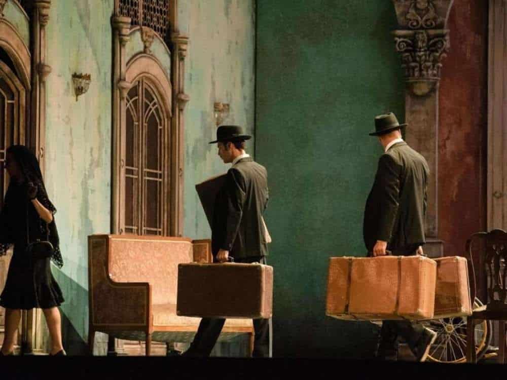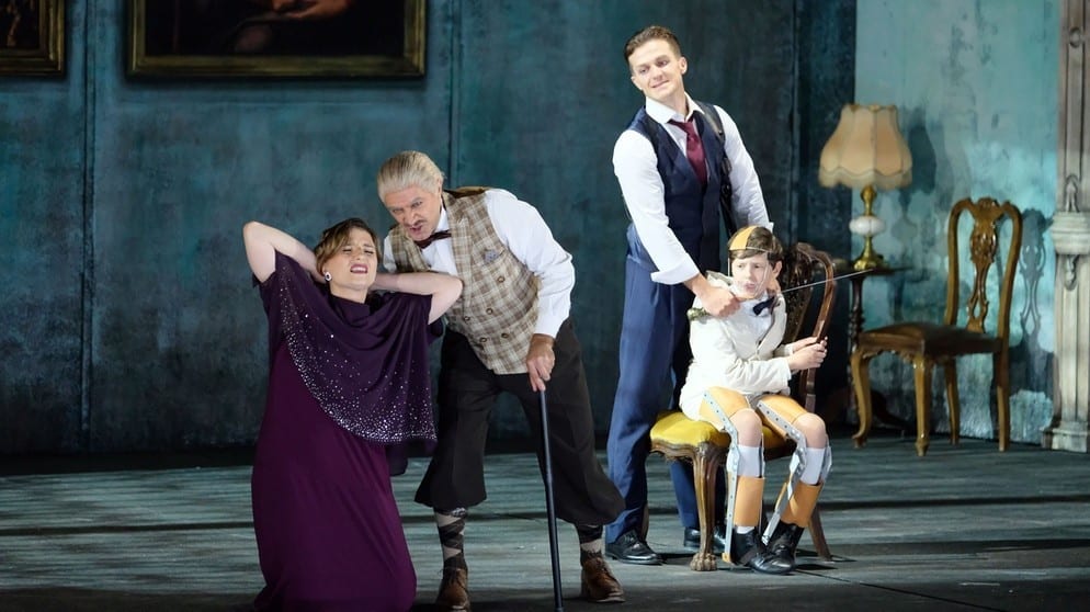 Un certain humour macabre imprègne la lecture de Cenčić : pendant la première partie de l’ouverture (tripartite), on voit Ludovico étendu mort sur une grande table où la famille est réunie, tandis que la vieille femme en fauteuil roulant fait irruption en ricanant. La dernière scène sera symétrique à la première, si ce n’est que, cette fois-ci, nous assistons à la mort de Lottario lui-même.