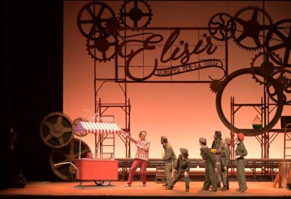 Dirigé par Marc Leroy-Calatayud, l’Elixir d’Amour de Donizetti est donné dans une version française d’Henri Tresbel à destination du jeune public au Théâtre des Champs-Elysées. Il sera diffusé sur la plateforme éducative de France Télévision « Lumni » à partir du début du mois de mars, si ce n’est un peu avant. Grâce au travail d’artiste du metteur en scène Manuel Renga et du scénographe Aurelio Colombo, chaque scène est à la fois un divertissement et un tableau. Les spectateurs sont plongés dans un univers doux et sucré qui n’est pas sans rappeler celui de Charlie et la chocolaterie de Roald Dahl. Le spectacle fera l’objet d’un DVD qui sera commercialisé dans le cours de l’année.