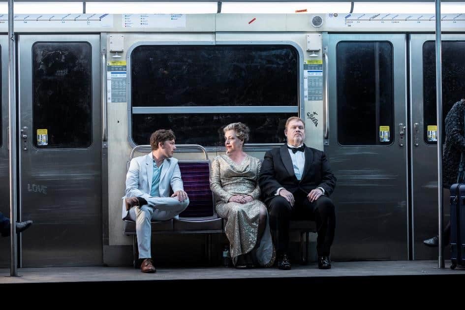 Quelle est l’idée profonde justifiant cette mise à mort du poétique ? Une dérive de notre époque, qui verse dans un criticisme et un relativisme corrosifs et narcissiques, jusqu’à la cancel culture, et pour laquelle la magie wagnérienne et toute sa symbolique seraient à déconstruire et à détruire ? Si les décors sont très bien conçus, le chœur wagnérien est mis au rencard (en « off », et pas même appelé à saluer à la fin) et les invraisemblances se multiplient. Dans l’acte III, Tristan est poignardé et se vide de son sang pendant une heure dans une rame de métro, mais personne ne s’y intéresse… On passe abruptement d’un second plan urbain à un plan maritime dans l’acte I (on suppose être sur un bateau dans une ville… et hop, sur la mer…) ; on regarde la mer alors qu’on est… dans le métro parisien, Porte des Lilas. Dans ce cas, pourquoi ne pas se placer dans le métro marseillais ? Ah oui… c’est la province, c’est médiocre. Le thème écologique n’est pas exploité : le cor anglais, symbole central, au solo interminable, est relégué dans un wagon à faire la manche ; sa magie, si chère à Rattle, est attaquée.
