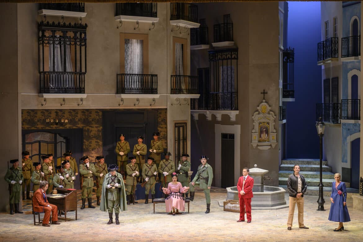 Tour à tour musiciens ambulants et soldats de la phalange franquiste, les artistes masculins du Chœur de l’Opéra royal de Wallonie-Liège sont rigoureusement préparés et prennent toute leur part à la folie des grands ensembles crescendos qui ponctuent la partition du Barbier.