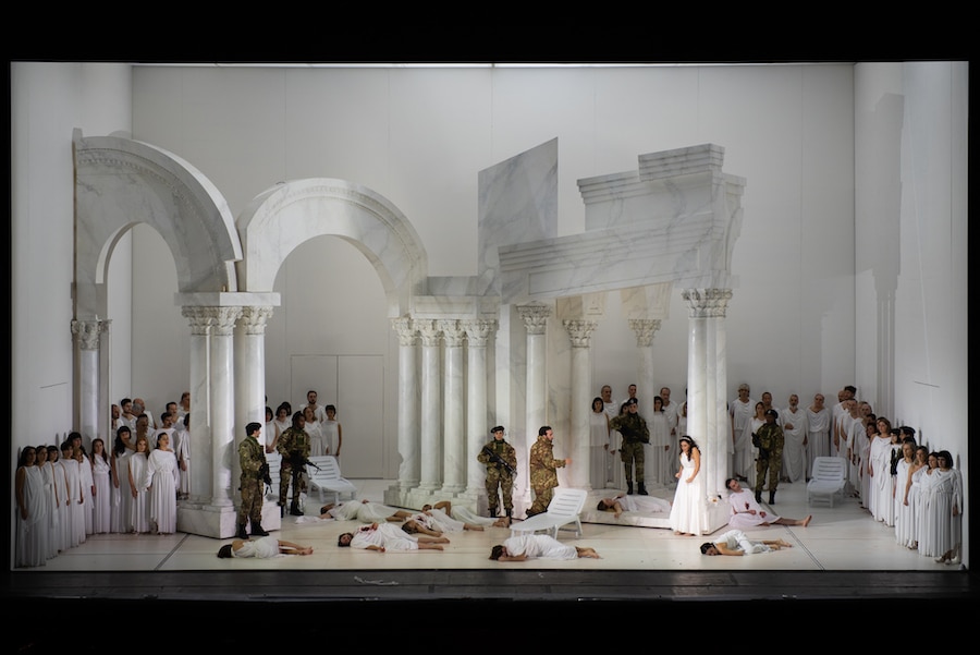Dommage que la fluidité du discours musical soit interrompue par les interminables changements de scène imposés par la mise en scène de Simon Stone, qui propose ici sa première mise en scène d’opéra en Italie – nous avons en revanche déjà vu ses Trois Sœurs de Tchekhov au Carignano de Turin – mais qui a déjà travaillé avec Mariotti dans la fameuse Traviata de Paris.