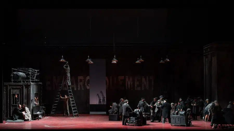 Nous commençons donc par l’opéra de Puccini, pour poursuivre avec celui de Massenet et enfin celui d’Auber, mis en scène dans le cadre d’une mini-saison précédant la saison officielle qui débutera le 23 novembre. Les trois opéras ont des interprètes et des metteurs en scène différents, mais ils sont tous confiés pour la mise en scène au même Bernard, qui a choisi comme clé de lecture le cinéma, et le cinéma français en particulier, à trois époques différentes. Pour Manon Lescaut de Puccini, ce sont les films des années 1930 et 1940, ceux du « réalisme poétique » comme Quai des brumes (1938) de Marcel Carné ; Les enfants du paradis (1945) toujours de Carné ; La bête humaine (1938) de Jean Renoir et bien sûr Manon (1949) d’Henri-Georges Clouzot.