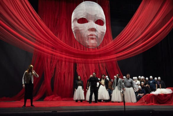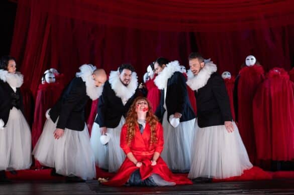 Seule une metteuse en scène comme Valentina Carrasco pouvait faire de Lucrezia Borgia une quasi proto-féministe ! Dans sa lecture de l’opéra de Donizetti, en effet, la fille illégitime de Rodrigo Borgia, futur pape Alexandre VI, et sœur de Cesare Borgia, est vue comme une héroïne de roman noir, non pas une femme victime, mais une femme bourreau. « Une femme seule au pouvoir dans un monde d’hommes, une femme autrice de son propre destin » et qui, pour une fois, ne meurt pas par amour, ce qui est rare dans le monde de l’opéra.