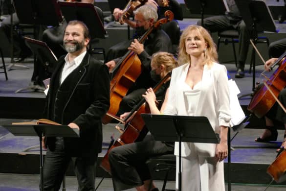 Dominant l’équipe homogène des chanteurs français, Sophie Koch (mezzo soprano), Florian Laconi (ténor) et Florian Sempey (baryton) se livrent avec sincérité à l’exercice du récital lyrique. On perçoit toute l’épaisseur dramatique de leur expérience lyrique à l’international. Florian Sempey est à sa place, vocalement, rythmiquement, caractérisant quelque rôle qu’il endosse : le paysan breton, le Dancaïre ou Moralès (la même impression surgissait de sa prestation dans Valentin du Faust de l’Opéra de Paris en mars 2021). Dans l’air du paysan rapace, Hoël (« O puissante magie » du Pardon de Ploërmel ), le baryton démontre l’étendue de son talent, conquérant et maléfique « sur vos ailes de flamme », charmeur par son legato, généreux dans ses graves.