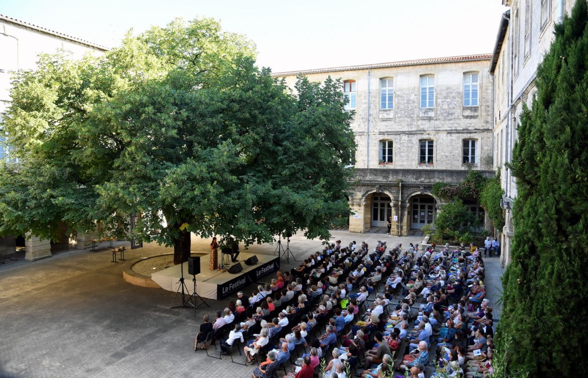 Ce 17 juillet, le Festival pose ses valises en Italie : tous les concerts respirent l’italianità, berceau de tant de genres musicaux et de tant de ressources culturelles. Entre un récital de pian et le concert de l’Orchestre national de Montpellier (VERDI, DALLAPICCOLA), nous tendons l’oreille vers les « chants traditionnels du sud de l’Italie ». Sous l’immense tilleul de la cour Soulages (rectorat de Montpellier), un duo de choc embarque son auditoire vers le Salento (le talon de la botte) dans les Pouilles, mais aussi vers la Sardaigne, la Sicile. La chanteuse Maria Mazzotta (née à Lecce, double formation « classique » et traditionnelle) fait son miel de traditions poétiques et musicales du territoire, matinées d’influences balkaniques et jazzy, avec son comparse accordéoniste, Vince Abbracciante (Prix du Festival international de Castelfidardo, 2011). Les anecdotes qu’elle livre entre les 10 chansons de leur répertoire (entre le trad et la chanson populaire) tissent une délicieuse immersion italianisante. Car le tout est pimenté d’ingrédients « à la Nanni Moretti » : l’artiste et la femme se racontent plaisamment, mais sans complaisance !