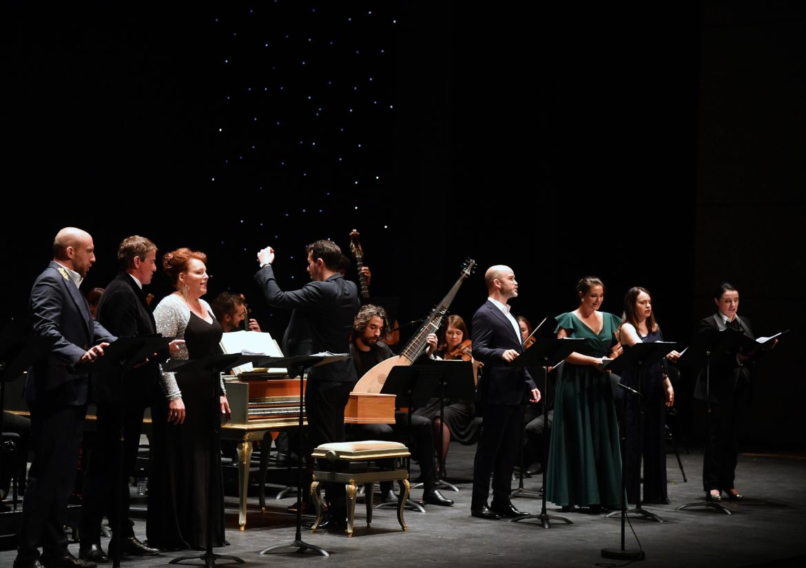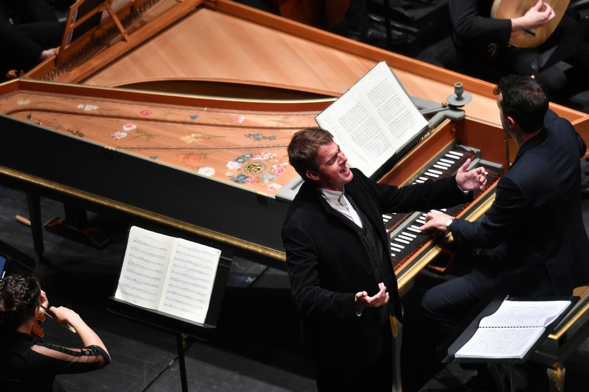 Dirigé par le jeune concertiste Francesco Corti (depuis son clavecin !), l’ensemble Il Pomo d’oro, fondé en 2012, est l’artisan constant du succès du concert. Relevons la virtuosité des trompettes et cors naturels, la réactivité du continuo (violoncelle, théorbe, contrebasse, 2 clavecins) que l’on souhaiterait néanmoins plus diversifié au cours des actes. Leur prestation s’inscrit d’emblée dans la lignée d’enregistrements de Radamisto : N. McGegan chez Harmonia Mundi (1994), Alan Curtis chez Virgin Veritas (2005).