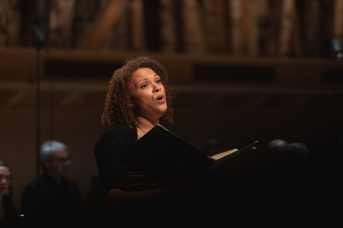 Mais l’engagement des instrumentistes et des chanteurs des Arts Florissants est au rendez-vous pour envelopper les auditeurs dans leur cercle magique. Côté instrumental, la cohésion et la sûreté du continuo, confié à l’orgue (Marie van Rhijn), au violoncelle (Cyril Poulet) et au luth (Thomas Dunford), sont des atouts permanents, tandis que le pupitre des hautbois dans l’aria Von den Stricken, ou celui des flûtes traverso dans la joyeuse ritournelle de l’aria avec soprano (Ich folge dich gleichfalls) sont excellents. Si toutes les cordes interagissent avec une écoute collective, relevons les couleurs scintillantes des deux violes d’amour (Emmanuel Resche, Patrick Oliva) pour deux Arioso remplis d’une séduction éthérée (Betrachte meine Seele ; Erwäge). Signalons enfin la virtuosité de la gambiste (Myriam Rignol) dans l’air pénétrant qui scelle la destinée et le message du Christ, Es ist vollbracht (Tout est réalisé).