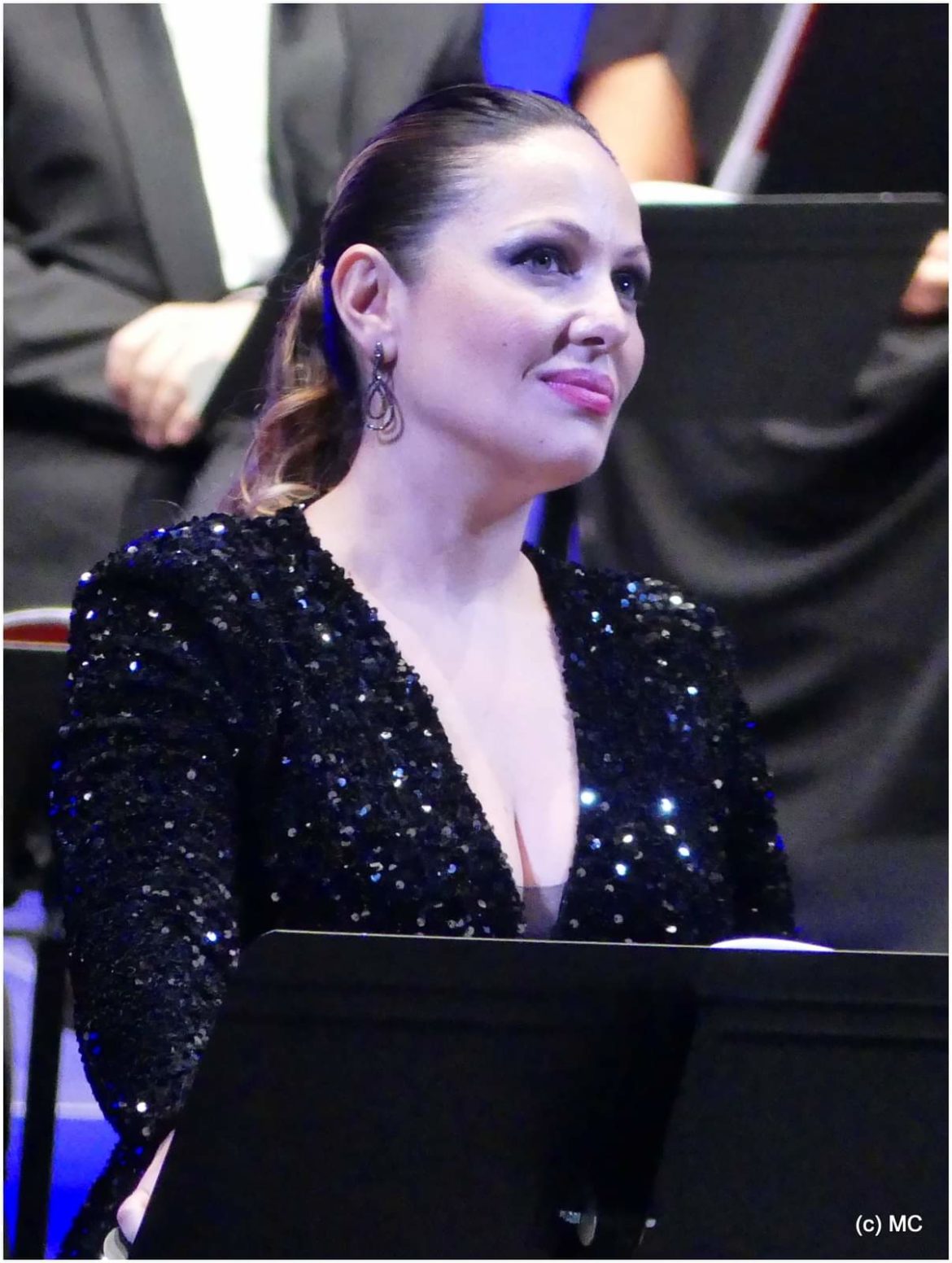 Mais, pour nous, c’est encore la prise de rôle de Nino Machaidze, dans les atours de la magicienne de Damas, qui était attendue avec le plus d’impatience. Forte de ses incursions dans le répertoire du premier Verdi (sa prise de rôle convaincante l’hiver dernier à Monaco en Giselda des Lombardi avait rassuré sur le tournant vocal pris par celle qui restait encore, pour nous, Juliette à Salzbourg alors qu’elle chante désormais Luisa Miller et Giovanna d’Arco…), la soprano géorgienne relève sans doute ici l’un des plus beaux défis de sa carrière actuelle. Dans cet ouvrage, davantage encore que dans tous ceux composés par Rossini pour sa maîtresse – et future épouse – Isabella Colbran, tout semble participer de cette « tessiture meurtrière » relevée souvent par l’analyse musicologique ! Ce défi, nécessitant puissance, agilité, vitesse, cantabile et… folie (!), Nino Machaidze, dont la voix dispose d’une belle homogénéité sur tout l’ambitus, le fait sien et, avec un art du chant orné rossinien, se jette dans la bataille pour en ressortir triomphante : non seulement dans son air redoutable le plus célèbre, « D’amore al dolce impero », mais également dans les quatre duos d’amour avec Rinaldo qui constituent le « climax » de chaque acte et, enfin, dans l’hallucinante scène finale qui voit Armida, vengeresse, s’envoler sur son char à travers les flammes ! C’est dans ce dernier moment où l’interprète doit rejoindre la chanteuse et, poussant son art dans ses ultimes retranchements, délivrer à un public conquis une authentique scène de tragédie classique, que l’on pourrait regretter l’absence de mise en scène. Pourtant, le charisme de Nino Machaidze, vêtue ici d’une magnifique robe noire scintillante, est tel qu’il parvient à créer cette mystérieuse alchimie qui fait d’Armida sans nul doute, l’un des ouvrages les plus excitants de Rossini.
