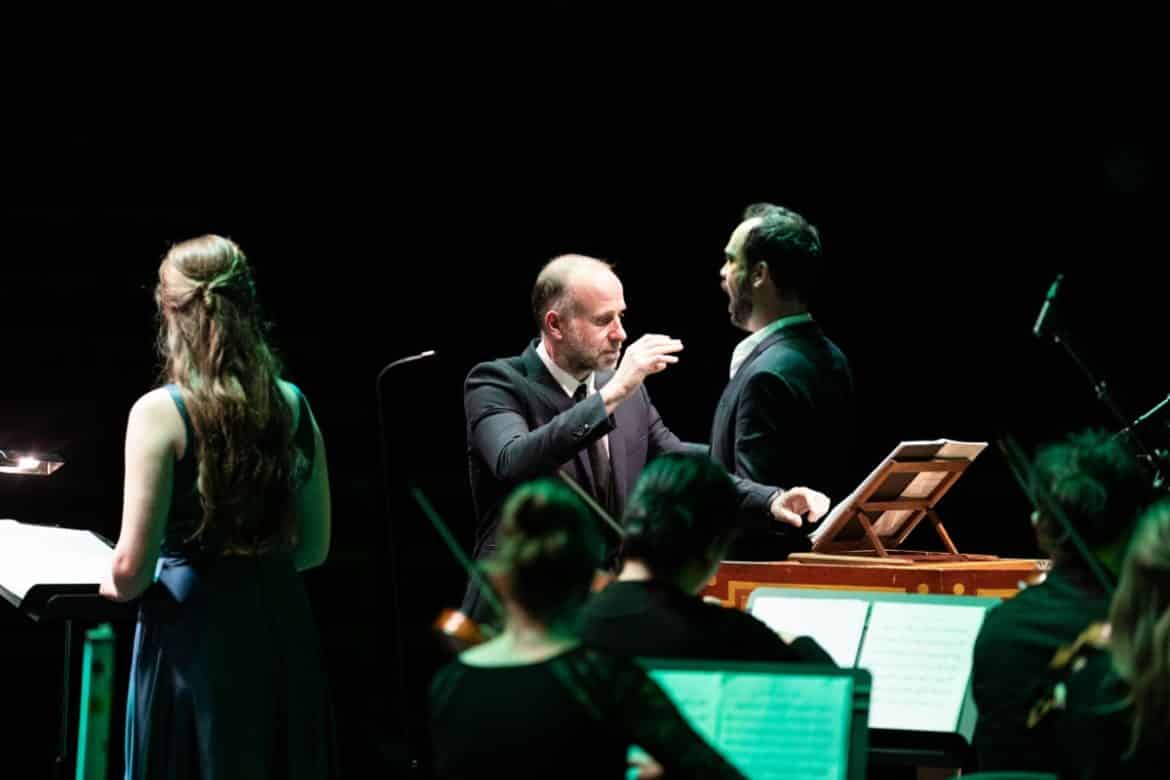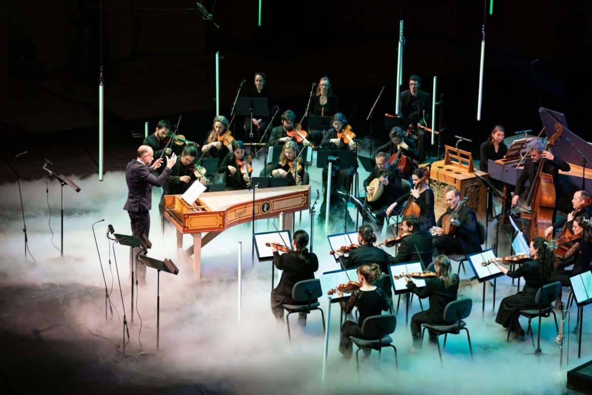 Le manuscrit provient d’une découverte dans le fonds ancien de la Bibliothèque Municipale de Lyon. Seuls la date de 1713 et le nom « Da Mancia » y étaient apposés comme une invitation à redécouvrir l’histoire de la musique, l’ensemble de la partition restant sans titre [1]. Après plusieurs recherches, le musicologue Marco Bizzarini de l’Université de Naples, spécialiste de la musique italienne ancienne et baroque, a pu établir qu’il s’agissait bien de la copie d’un oratorio oublié de Luigi Da Mancia, probablement créé pour le Carême à Modène en 1698. Aucun autre manuscrit de l’oeuvre n’a été retrouvé à ce jour. En comparant la partition à d’autres ouvrages connus de Mancia, Franck-Emmanuel Comte et Marco Bizzarini ont reconnu un style identique. L’aventure lancée, c’est cet oratorio, rebaptisé pour l’occasion Il Paradiso perduto qui attira, ce lundi, un nombreux public, enthousiasmé par ce qu’il découvrait [2] : rien moins qu’un « péplum biblique avec des personnages de théâtre » comme l’indiquait le programme disponible grâce à un flashcode. Ainsi, après Falvetti et son Diluvio universale de 1682, redécouvert en 2010 par Leonardo Garcia Alarcon, voici, en 2022, un véritable Paradis retrouvé grâce à Franck-Emmanuel Comte.