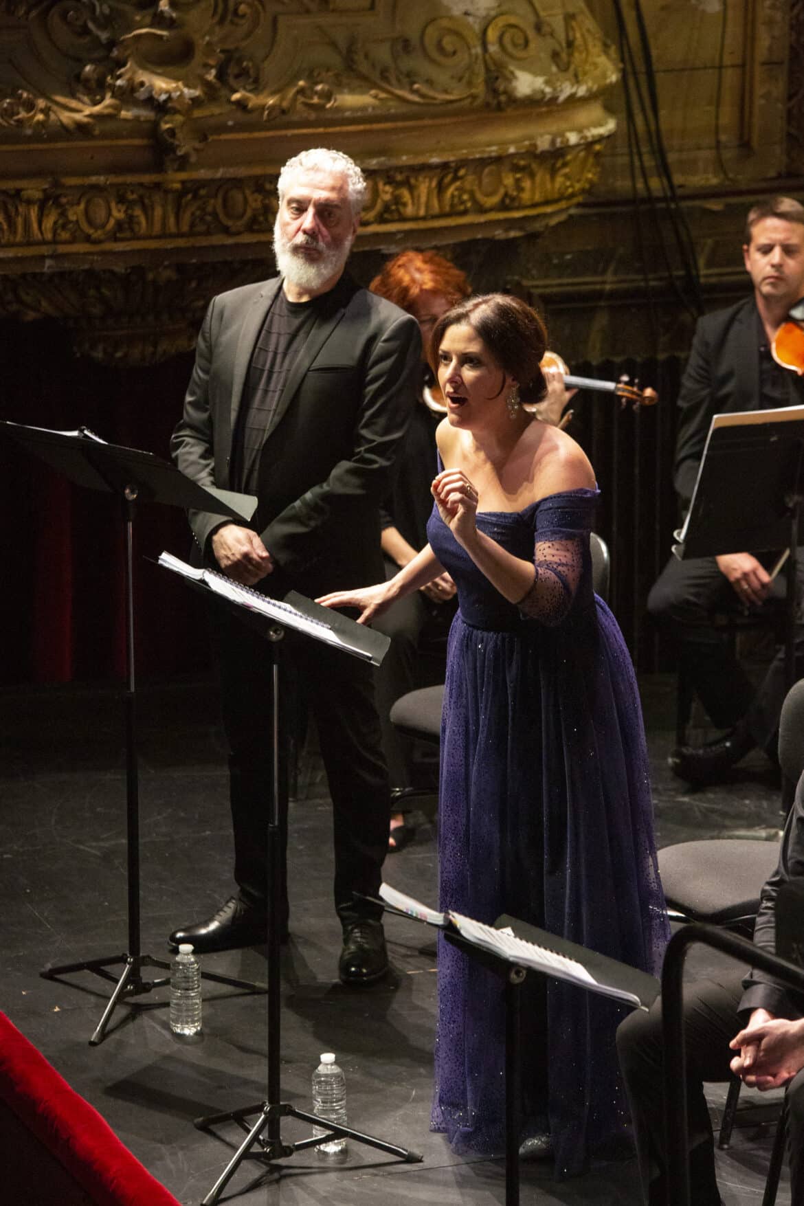 L’œuvre, dirigée par le chef maison Laurent Campellone, est servie au mieux par un orchestre et des chœurs (ceux de l’Opéra de Tours ont été pour l’occasion renforcés par ceux du Capitole de Toulouse) survoltés, totalement impliqués dans la défense de cette œuvre inégale – même si tout le monde joue et chante peut-être un peu fort au regard de la dimension modeste du Grand Théâtre de Tours… La distribution fait preuve de la même vaillance, y compris dans les rôles secondaires : Yuri Kissin est un Landéric plein d’assurance. Jean-Fernad Setti, que nous avions applaudi dans un superbe Escamillo à Bordeaux en 2021 https://www.premiereloge-opera.com/article/compte-rendu/production/2021/06/01/a-bordeaux-deux-carmen-sinon-rien-critique-30-mai-2021-aude-extremo-adele-charvet-stanislas-de-barbeyrac-jeremie-schutz-chiara-skertah-jean-fernand-setti-olivia-doray-ambroisine-bre-romain-dayez/, commence timidement, avec une émission vocale qui n’a pas tout à fait l’assurance que nous lui connaissons. Mais après l’entracte, la voix se stabilise et le chanteur fait montre de très belles qualités, de style et de diction notamment. La même progression s’observe dans la prestation de Kate Aldrich dont le chant gagne pareillement en assurance après l’entracte. La voix de la mezzo américaine a un peu perdu en velouté et certaines raucités apparaissent ici ou là, mais elles servent finalement la caractérisation de ce personnage dur et sournois. Le rôle de Fortunatus permet à Artavazd Sargsyan de faire entendre un très agréable timbre de ténor léger ainsi qu’un art du chant consommé, avec notamment de très beaux aigus en voix mixte ou en voix de tête, naturellement intégrés à la ligne de chant. Florian Laconi défend avec vaillance le rôle difficile de Mérowig, à l’écriture assez tendue, et parvient à une vraie émotion dans la scène finale de son suicide. Tassis Christoyannis est un superbe Hilpéric, parfaitement convaincant dans son portrait d’homme faible manipulé, émouvant dans sa grande scène du IV, avec comme toujours une diction quasi irréprochable. Brunnhila, enfin, est incarnée par Angélique Boudeville. Si la diction nous a peut-être paru un peu moins nette que d’habitude, la voix ample et le timbre fruité de la soprano conviennent bien au lyrisme du personnage, dont elle traduit très efficacement la grandeur et la féminité.