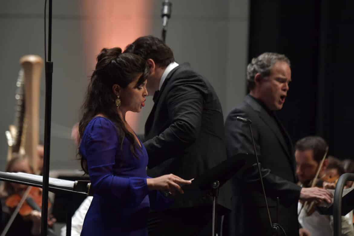 De fait, les mouvements symphoniques avec baryton solo et chœur sont interprétés, puis une seconde pause permet à Jodie Devos de se joindre à l’équipage alors au complet pour le final, sous le commandement de Cristian Mãcelaru. La grandiloquence orchestrale et chorale se déploie dans l’Opéra Berlioz, avec notamment les cuivres rutilants et bois chambristes de l’Orchestre national, tandis que le Chœur de Radio-France est excellement préparé par Christophe Grapperon (à quelques imprécisions près, lors d’entrées du contingent masculin), on apprécie particulièrement les sections chorales dans le style anglais renaissant ou même de psalmodie grégorienne. Le baryton canadien Gerald Finley n’est pas encore le capitaine maudit du Vaisseau fantôme (saison 2023) ; ses soli valorisent le registre poli du médium et de l’aigu. Les ponctuations du soprano Jodie Devos sont lumineuses ou ragaillardies dans cette partition, sans faire oublier son triomphe dans Ophélie d’Hamlet une semaine auparavant. Décidément, l’eau est l’élément dont l’artiste devra se méfier ou s’affranchir …