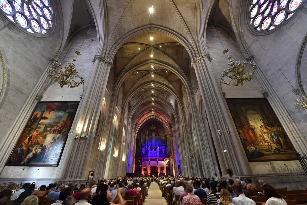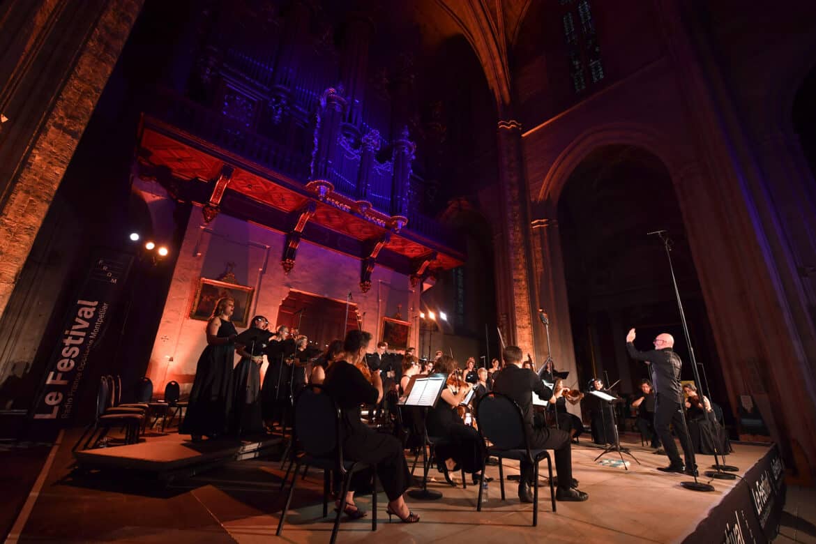 Après les polyphonies vocales a cappella des King’s Singers en début de semaine, cette programmation complète avec bonheur le panorama du premier âge d’or anglais. L’excellence de tous les pupitres vocaux du chœur de chambre toulousain, Les éléments, jaillit du fond de la cathédrale, fleurissant sous le somptueux buffet d’orgue. C’était aussi le cas lorsque Le Poème harmonique faisait surgir l’œuvre de Guillaume Bouzignac lors de l’édition 2021 du FROM.