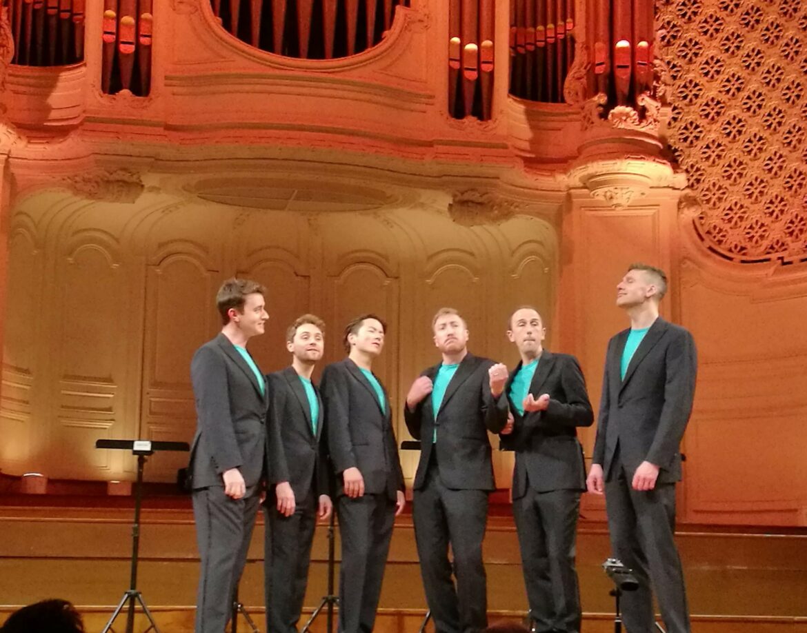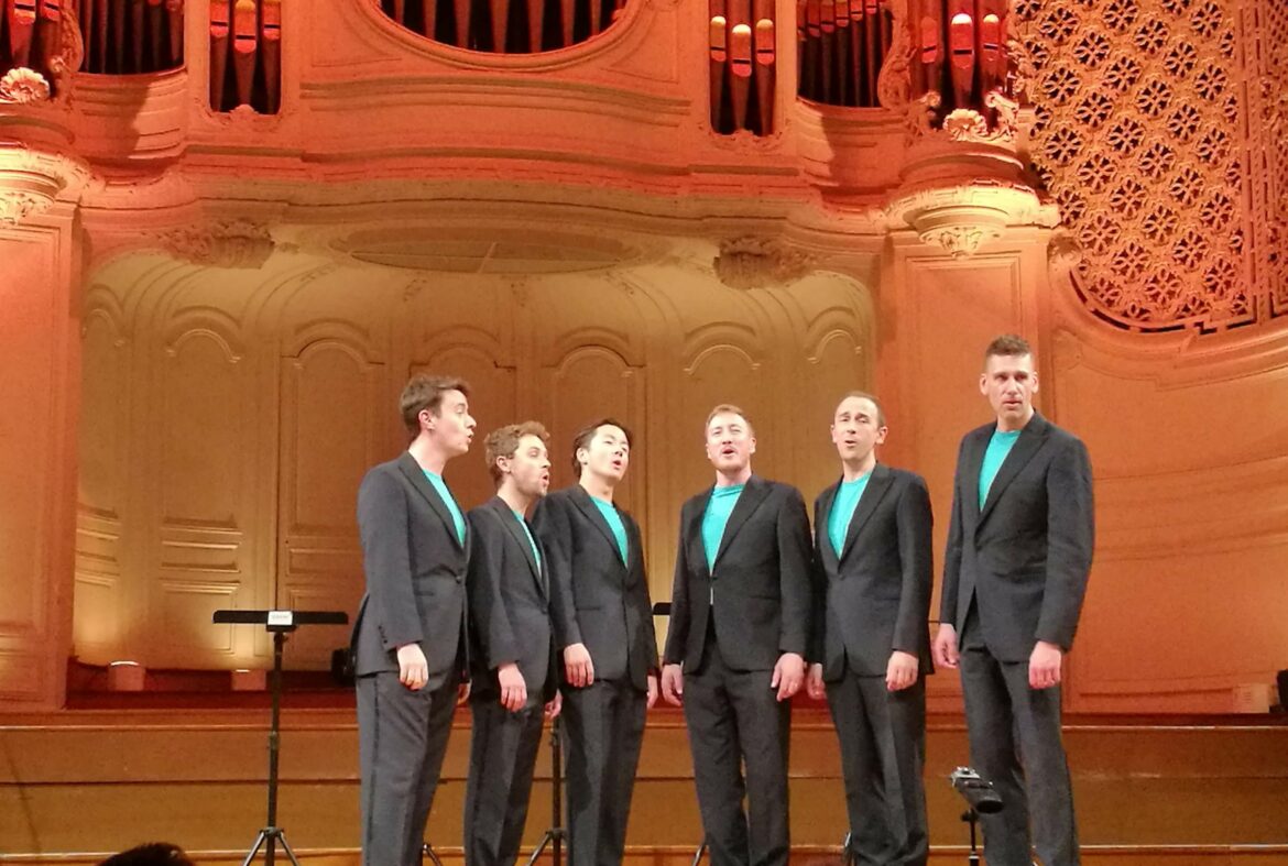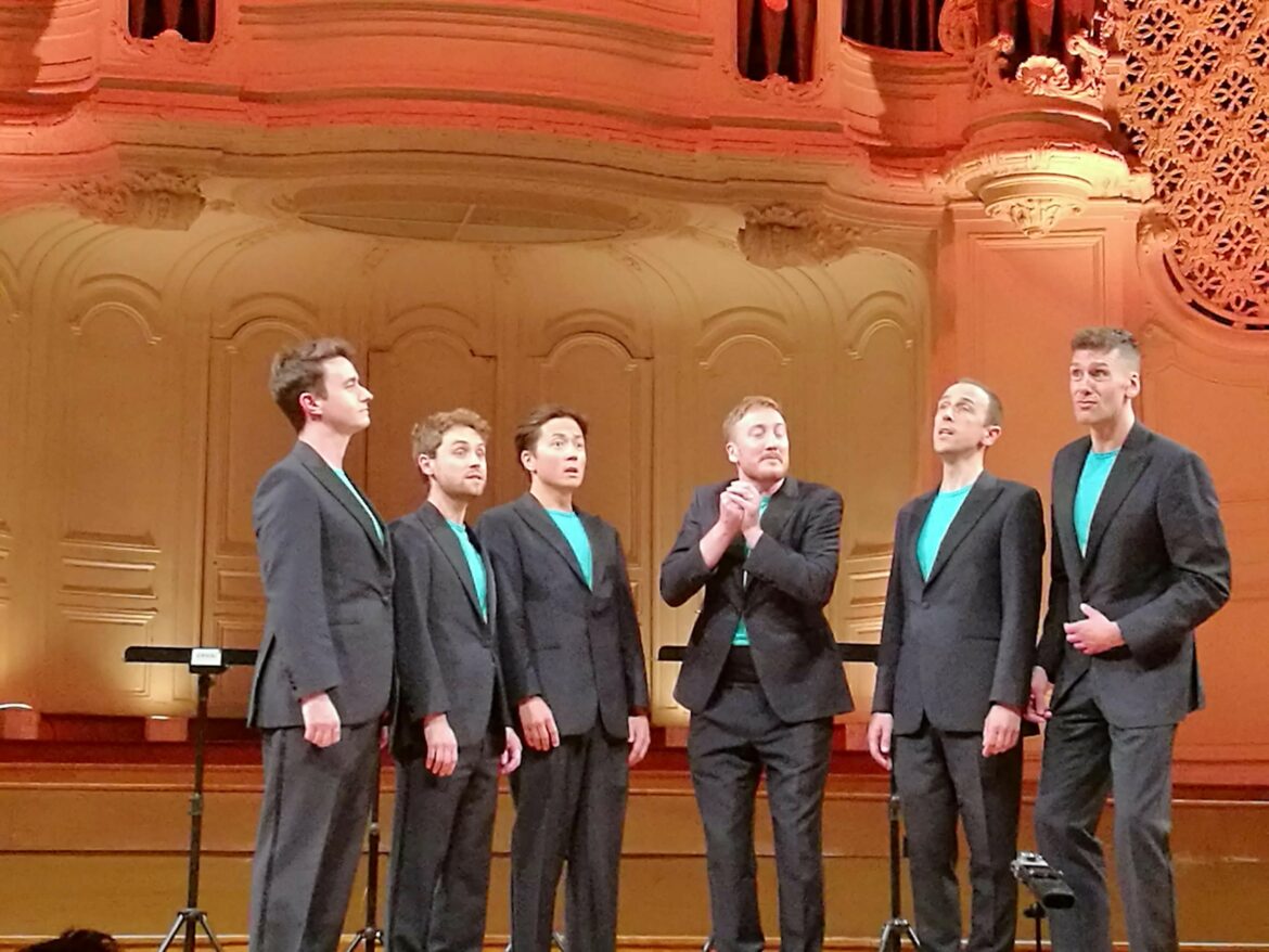 Après un passage l’été dernier au Festival Radio France de Montpellier (avec un programme complètement différent), qui avait ravi notre collègue Sabine Teulon-Lardic, les King’s Singers, grâce à Philippe Maillard Productions, posaient ce vendredi 07 octobre leurs valises salle Gaveau dans le cadre d’une tournée 2022-2023 qui les conduira à travers l’Europe, les États-Unis et le Canada. Ce célèbre chœur anglais a cappela, constitué depuis sa création de deux contre-ténors, un ténor, deux barytons et une basse, est né en 1968, lorsque six choristes du King’s College de Cambridge (d’où leur nom…) donnèrent un concert au Queen Elizabeth Hall de Londres. Sur plus de 50 ans, leur répertoire, allant du chant choral anglais aux Beatles, ou aux créations contemporaines, n’a cessé de s’enrichir et est devenu immense. Mais ce soir, le programme est, de façon très originale, construit autour d’une jolie série d’anniversaires : les 100 ans de la naissance de Philip Larkin, poète anglais mort en 1985 ; les 400 ans des morts des compositeurs anglais Thomas Weelkes (1543-1623) et William Byrd (1576-1623), maîtres de la polyphonie anglaise, et de l’école anglaise du madrigal ; les 100 ans de la naissance du compositeur hongrois György Ligeti (1923-2006), dont plusieurs des Nonsense Madrigals seront interprétés ; les 50 ans de la naissance de la compositrice américaine Gabriela Lena Frank (née en 1972), les 150 ans des naissances des compositeurs britannique Ralph Vaughan Williams (1872-1958) et suédois Hugo Alfvén (1872-1960), les 50 ans de l’écriture du poème « Five ways to kill a man », à l’humour cynique et désabusé, mis en musique par Bob Chilcott, qui fut lui-même membre des King’s Singers de 1985 à 1997, sans oublier les 55 ans de King’s Singers, et … les 100 ans de la fondation Walt Disney !