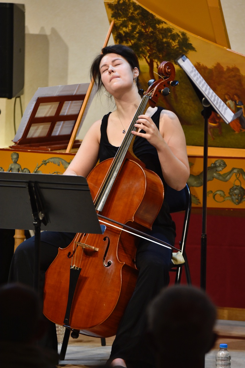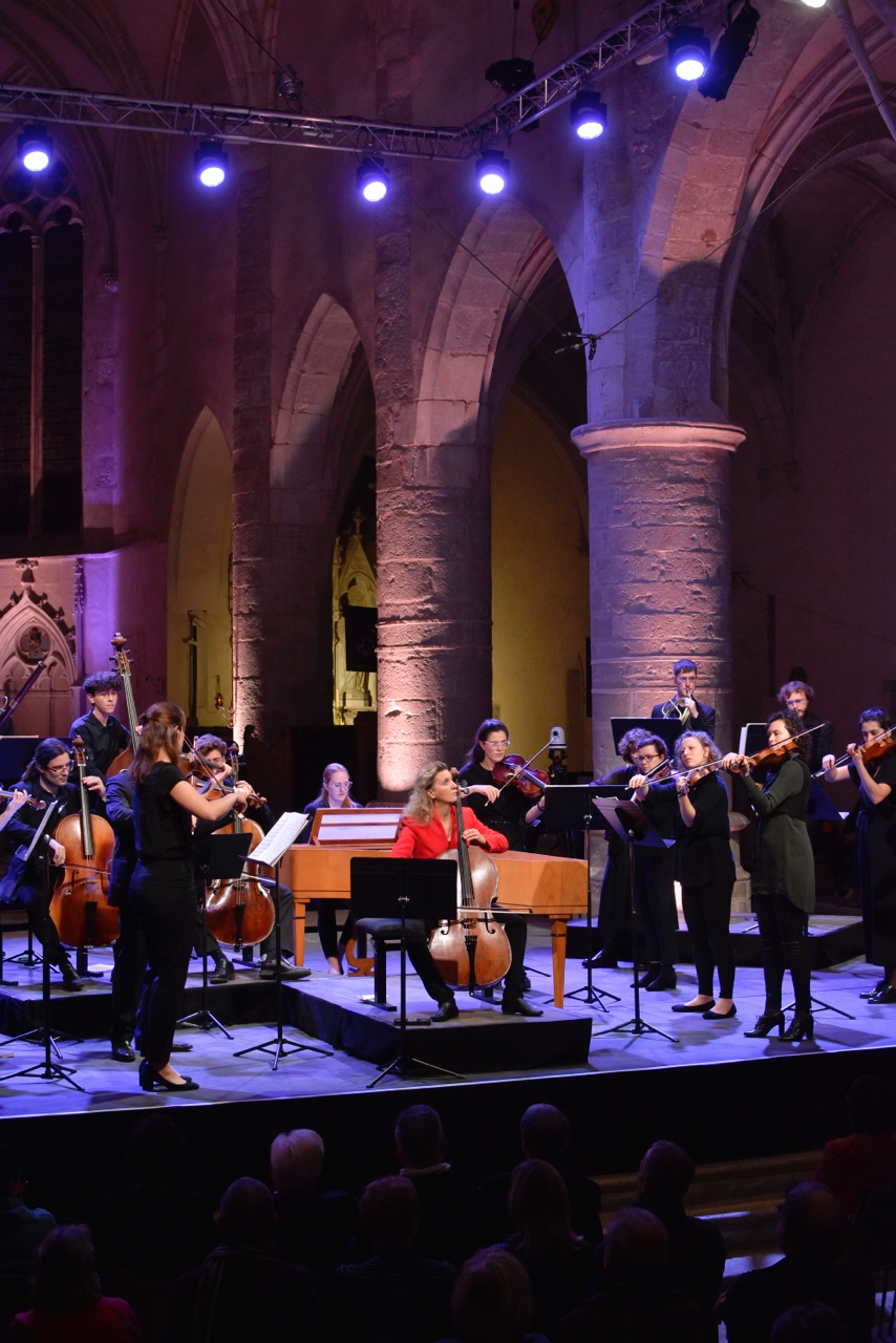 Le soir, le concert des Explorateurs débute sous des auspices citoyens et solidaires lorsque Ophélie Gaillard, leur cheffe au poste de violoncelle, le dédie aux populations de l’Iran. En outre, elle choisit de débuter la soirée avec un chant ukrainien arrangé pour leur formation. Cet orchestre des jeunes talents de l’Académie 2022 regroupe 13 nationalités en son sein et propose un programme dédié au classicisme européen. Après leur tournée estivale en Europe (8 concerts), autant dire que la performance est au rendez-vous, tant dans les symphonies de Mozart (KV. 129), de J. Haydn (La Passione, Hob 1-49) et de Boccherini (final de La casa del Diavolo) que dans le Concerto pour violoncelle de Luigi Boccherini (G. 483). La connivence entre l’ambassadrice internationale et les musiciens se perçoit dans les échanges concertants, notamment entre les chefs de pupitre des cordes, tenus par les quartettistes du Butter Quartet. Lorsque tout instrumentiste joue sur des copies d’instruments XVIIIe siècle (cordes en boyau, hautbois baroque, cor naturel, piano-forte), O. Gaillard dompte de son côté un violoncelle de Francesco Goffriller (1737). Une seule réserve : le choix systématique de tempi ultra véloces, pour chaque Allegro, banalise l’expression pour imposer une virtuosité trépidante. Le final de la symphonie de Boccherini, revisitant la Danse des furies d’Orphée (Gluck), se métamorphose en exercice de gammes plutôt qu’en vision démoniaque.