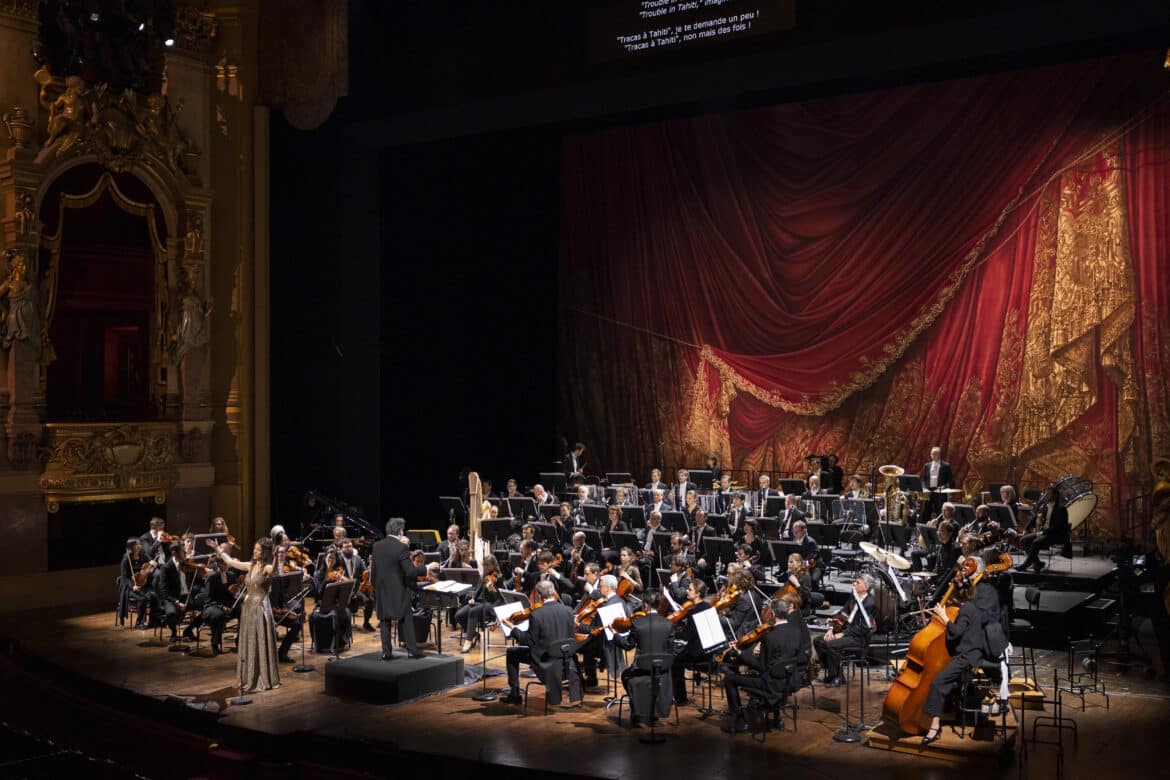 Que le directeur de l’orchestre de l’Opéra de Paris ait souhaité rendre hommage à son propre patrimoine musical, rien de plus normal. On s’étonne néanmoins de la manière dont il s’y est pris, avec ce concert « Carte blanche » qu’il a décidé de saucissonner en infimes rondelles alternant œuvres vocales et pages instrumentales, en une succession de pièces courtes, voire brévissimes, comme si le public parisien – c’est peut-être le cas, après tout – était incapable de supporter des compositions d’une durée excédant dix, voire cinq minutes. D’où une certaine impression de décousu, renforcée par les contraintes qu’impose la captation audio et vidéo, des techniciens intervenant constamment pour déplacer les micros sur le plateau. Sans parler du fait que, parmi les partitions réunies, figure bon nombre de ce que les Anglo-Saxons appellent lollipops, « sucettes », ces mélodies séduisantes qui plaisent à coup sûr. Les sucettes ont, en l’occurrence, un goût de chorizo puisqu’elles sont très majoritairement hispaniques : même lorsqu’on s’éloigne de l’Espagne et de l’Amérique du sud, on y revient indirectement, « Youkali », composé par Kurt Weill lors de son séjour parisien, étant écrit sur un rythme de habanera, et le duo extrait de West Side Story réunissant deux Latino-Américaines, Maria et Anita. Leonard Bernstein est très présent dans ce concert, depuis un réjouissant « Dance Episode » tiré de On the Town, jusqu’à une assez terne valse composée en 1980 dans le cadre de son Divertimento pour orchestre, sans oublier un des sommets de Trouble in Tahiti, « Island Magic ». Et puisque la fin de carrière de Kurt Weill se déroula aux Etats-Unis, le concert inclut aussi le fameux « Ice-Cream Sextet » de son opéra Street Scene.