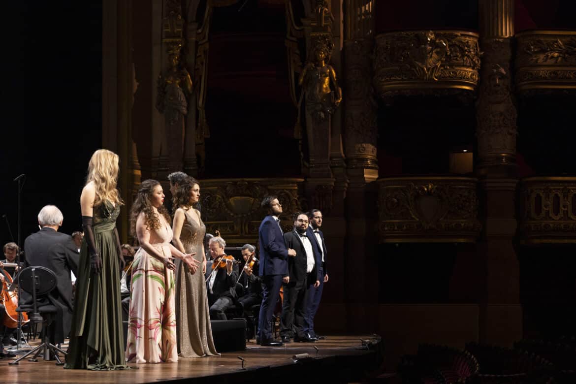 C’est avec ce sextuor, juste avant l’entracte, que la soirée s’anime enfin. En effet, jusque-là, la sauce ne prend pas vraiment. Curieux choix qu’une chanson en français (« J’oublie »), pour défendre les couleurs d’Astor Piazzolla, et étrange idée de la faire interpréter avec un micro par Alejandro Baliñas Vieites, bien plus convaincant dans « Mi barca vieja » tiré de la zarzuela La Galeota de Salvador Codina (1948). Margarita Polonskaya a à peine le temps de déployer sa voix dans les deux minutes trente que dure « La Rosa y el Sauce » de Carlos Guastavino (1942). Seule Martina Russomanno a véritablement le loisir de ravir les oreilles du public : on ne lui tiendra pas rigueur de ne pas strictement respecter les désirs de Villa-Lobos, qui souhaitait que la reprise de l’Aria de la cinquième des Bachianas Brasileiras soit chantée bouche fermée, et l’on retiendra surtout la beauté de ses aigus et la sensibilité de son interprétation de « La Maja y el Ruiseñor » extrait de Goyescas. Mais pourquoi ne lui laisser chanter qu’un numéro des Dos cantares populares d’Obradors ? Restés jusque-là en coulisse, trois autres membres de l’Académie de l’Opéra de Paris rejoignent leurs camarades à la fin de la première partie, et c’est d’ailleurs le sextuor de Kurt Weill qui sera redonné une heure plus tard en bis, tous étant emportés par la verve de Thomas Ricart et par l’accent italien avec lequel son personnage fait en anglais l’éloge de la crème glacée.