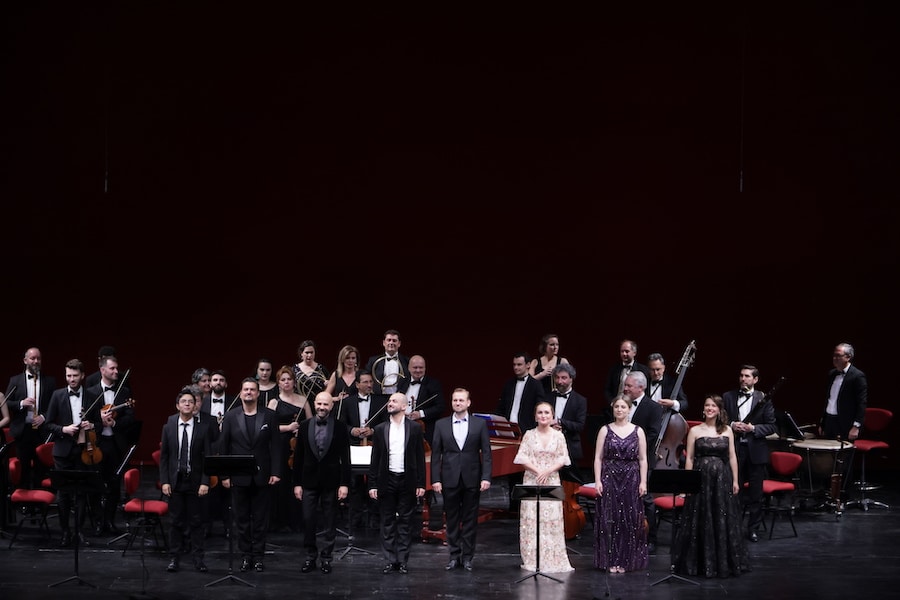 Le tout est dirigé avec talent et goût par George Petrou à la tête de l’Armonia Atenea, un orchestre dont la beauté sonore n’est peut-être pas des meilleures, surtout pour les bois, mais les instruments d’origine sont réputés difficiles à accorder. L’ensemble – composé de deux hautbois, d’un basson, de deux cors, de deux trompettes et de percussions, ainsi que des cordes et du clavecin – s’est néanmoins révélé un élément très souple et attentif aux instructions de son chef, auxquelles il a répondu avec une précision d’attaque et un élan rythmique enthousiasmant. Les contrastes sonores et les couleurs sont riches, jamais exagérés, et la réalisation des récitatifs est très précise, deux d’entre eux étant « accompagnés » aux moments les plus saillants de l’histoire : le finale du premier acte, dominé par la figure d’Adalgiso, et la scène du troisième acte lors du monologue d’Asprando, alors que l’âme noire de l’histoire lutte contre les visions infernales qu’elle entend défier.