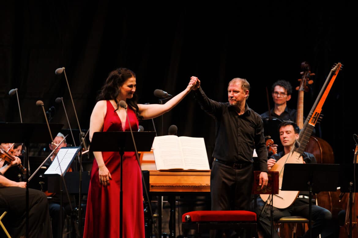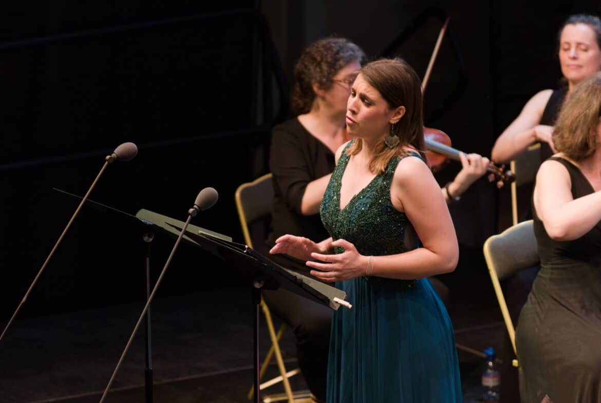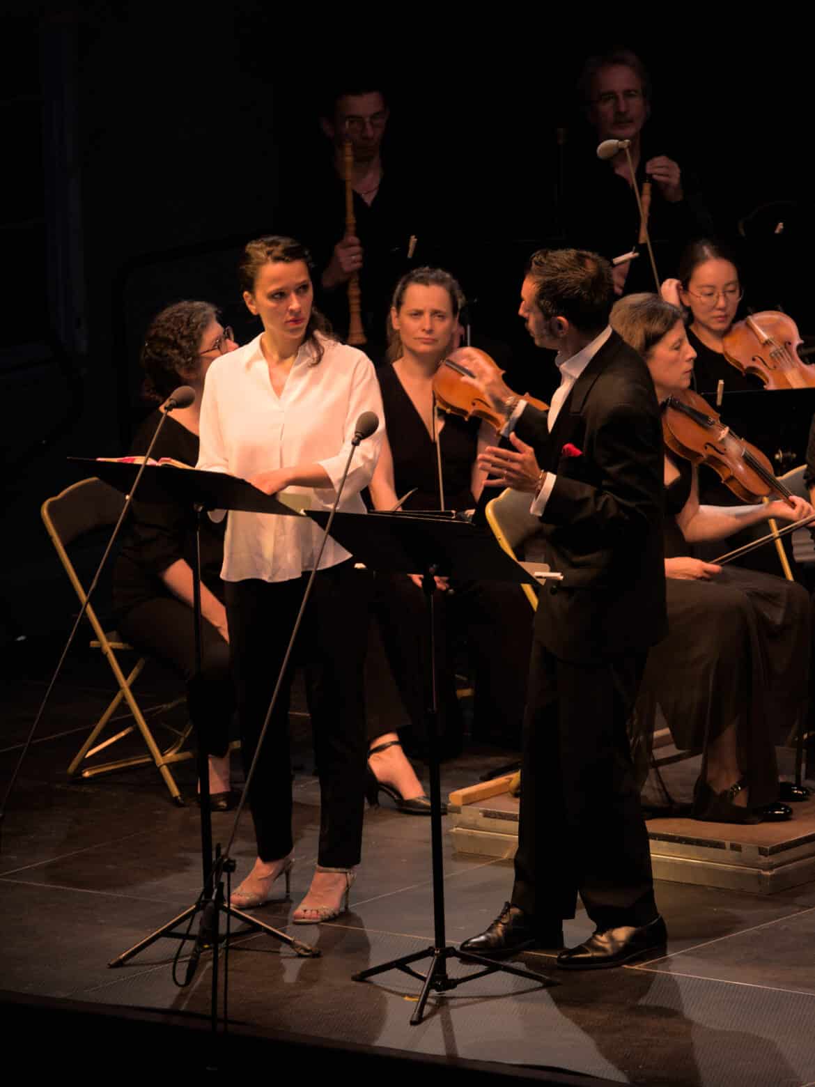 L’engagement de chaque musicien se lit autant dans leur jeu que sur les visages, le plus rayonnant étant celui de la claveciniste Marie van Rhijn, au jeu d’une volubilité joyeuse. Si le violon solo d’ Hélène Houzel décevait par une légère acidité dans son accompagnement de l’air « Ama sospira », peu en accord avec la sensualité de la voix de Gwendoline Blondeel, l’autre air de Morgana avec instrument obligé, « Credete al mio dolore », distillait un moment de pure beauté et d’émotion avec le violoncelle d’Alice Coquart qui subjugue par son accompagnement inspiré et sa musicalité profonde.