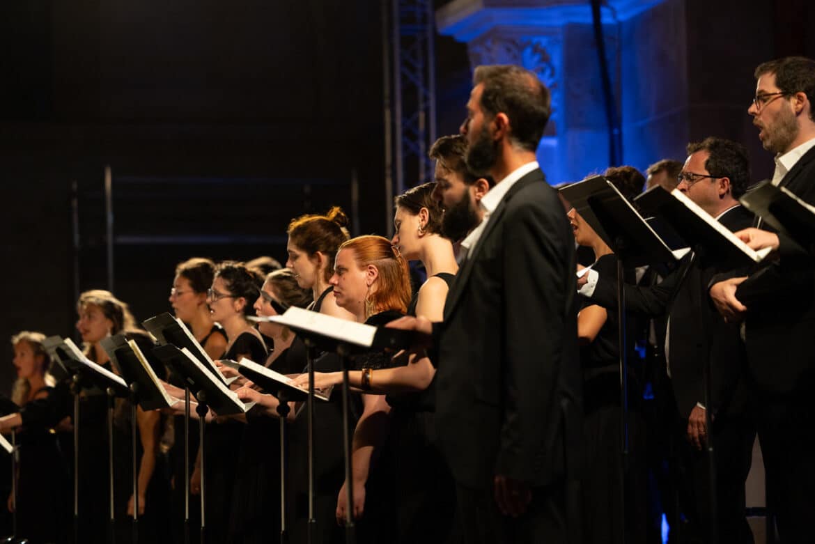 À tout seigneur, tout honneur : les ténors Matthieu Chapuis et Olivier Merlin éclaboussent de leur talent le concert de l’Ensemble Irini. Brillants dès la lente mélopée fuguée « Modo praesens oraculum », ils assurent la jonction entre les pupitres féminins et ceux des basses et constituent une force d’entrainement choral pour leurs six camarades sur laquelle la cheffe Lila Hajosi peut s’appuyer en confiance. La manière dont Olivier Merlin entonne a cappella le Trisagion de la liturgie byzantine avant d’être rejoint par le second ténor et les basses constitue indiscutablement un des moments forts du programme.