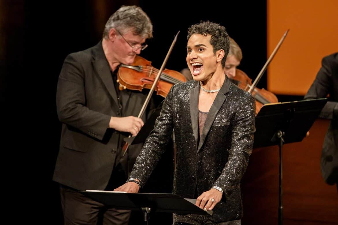 Après l’entracte, la qualité d’interprétation du chanteur monte incontestablement d’un cran : la voix s’est chauffée, elle a pris les mesures de l’espace à emplir et les airs de Vivaldi sont tous maitrisés comme on est en droit de l’attendre d’un artiste de sa trempe. De ce florilège d’arias italiens, on retiendra notamment un « Vedrò con mio diletto » qui tient la dragée haute à l’interprétation qu’en livra Jakub Orlinski à Aix-en-Provence en 2017 sur le plateau du Carrefour de Lodéon et, plus encore, le facétieux « Sventurata navicella »,donné en bis, dans lequel Samuel Mariño, libéré de tout trac et assuré de la bienveillance du public, s’abandonne à la beauté hédoniste de son chant et s’amuse avec les musiciens qui l’accompagnent.