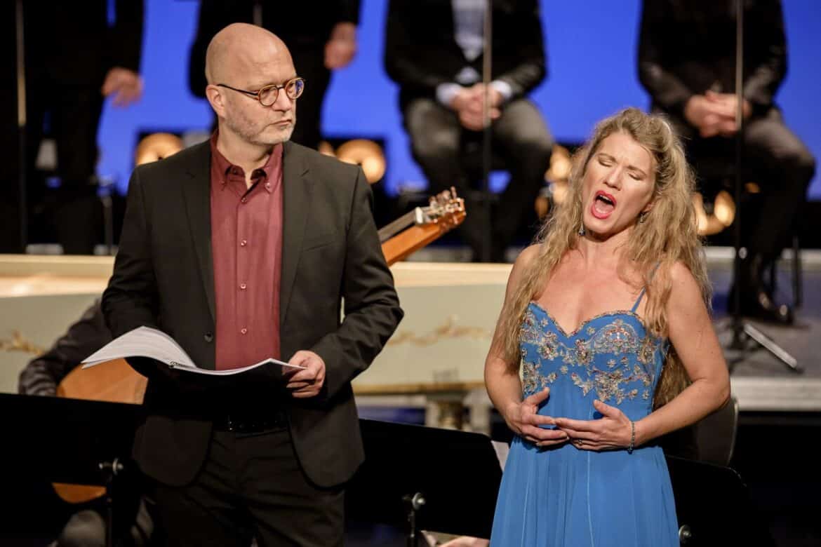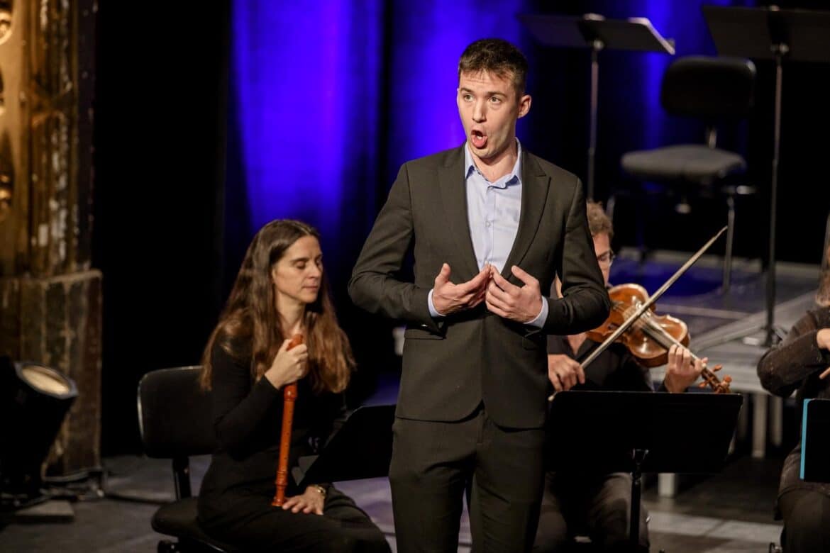 La partition de La descente d’Orphée aux Enfers étant incomplète – les musicologues se disputent encore pour savoir si Charpentier avait le projet d’y ajouter un troisième acte pour mettre en musique la remontée infernale et l’épisode de la curiosité d’Orphée se retournant pour s’assurer qu’Eurydice est bien derrière lui – Joël Suhubiette a fait le choix d’intercaler entre les deux actes un large extrait de la cantate H471 que Marc-Antoine Charpentier a composée trois ans plus tôt sur un thème très proche. C’est l’occasion, explique-t-il en introduction au concert, d’entendre une lamentation poignante et l’une des plus belles pages vocales du grand goût ludovicien.